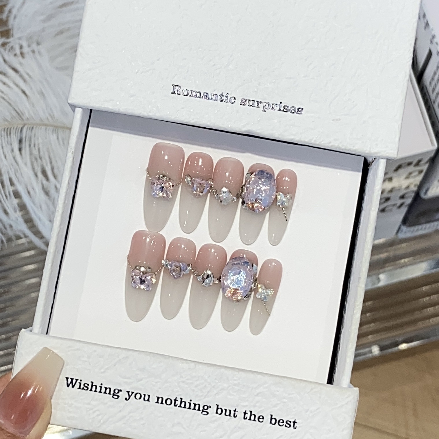 一只顾美甲厂【Y】【原创实拍】秋冬显白渐变钢珠链条椭圆堆钻波