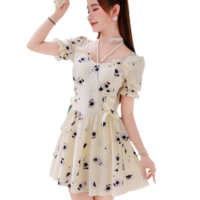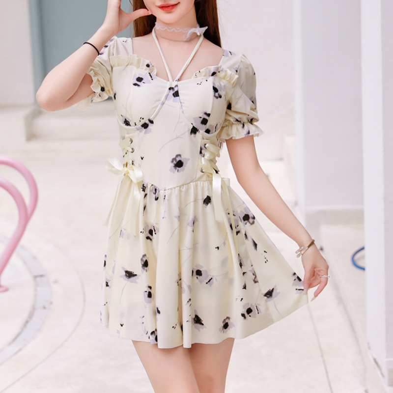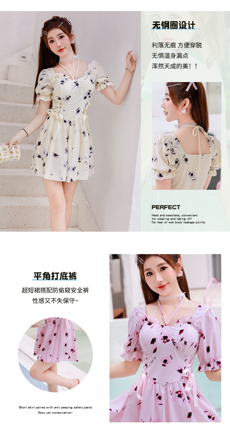 仙气游泳衣女连体平角保守显瘦遮肚性感温泉少女保守 大码泳装女