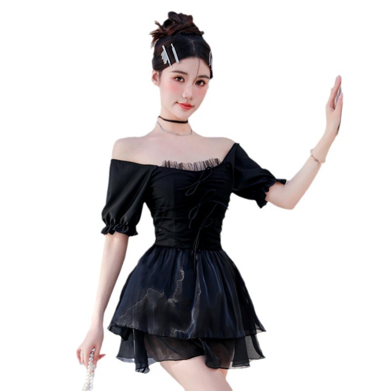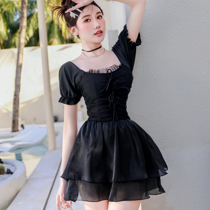 新款仙气游泳衣女连体平角保守显瘦遮肚收腰温泉高级感泳装女