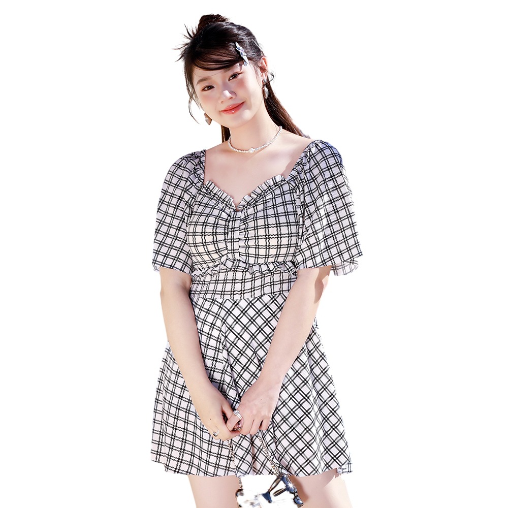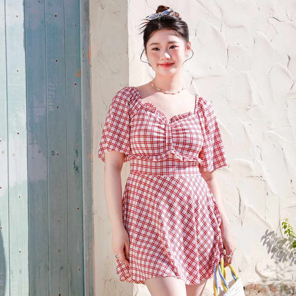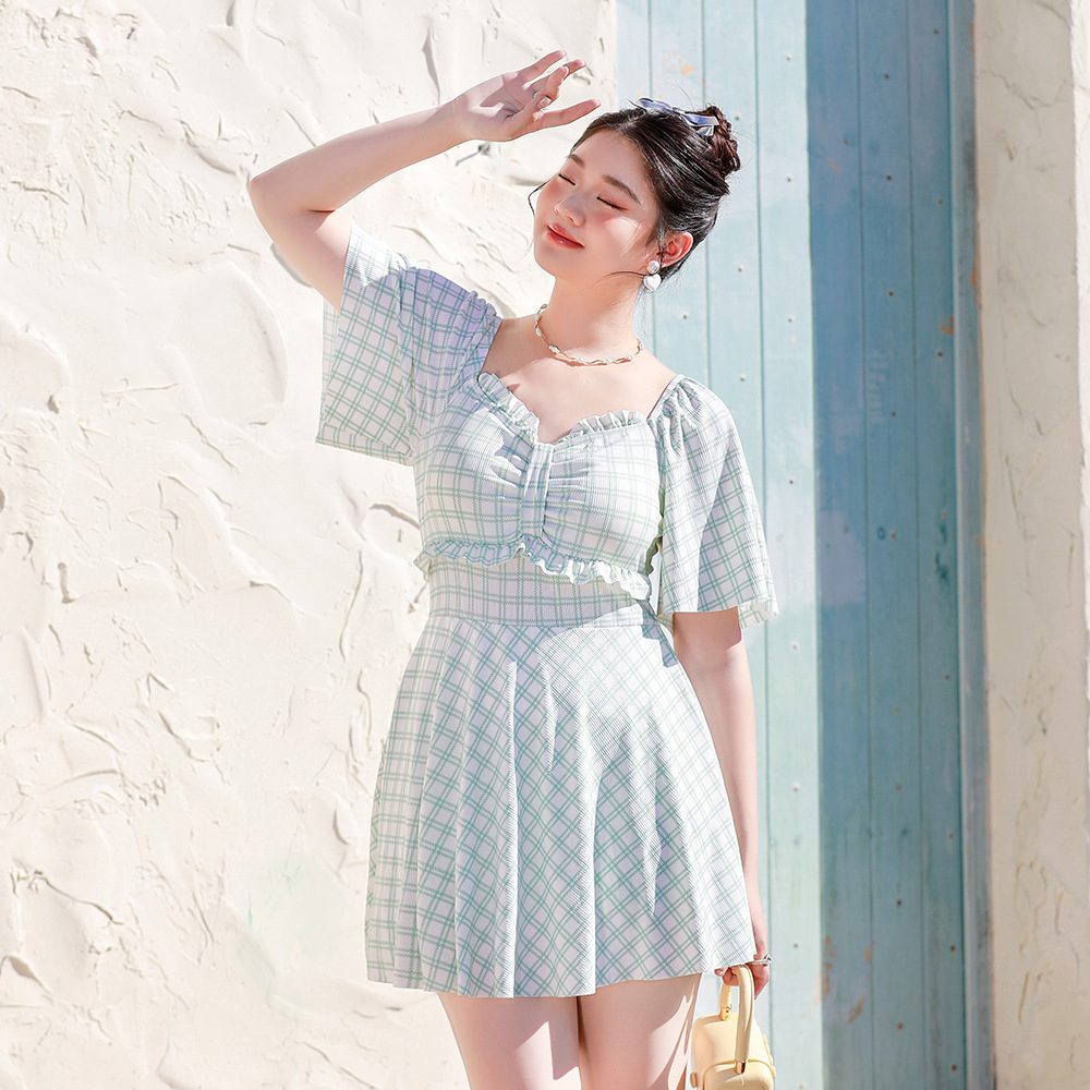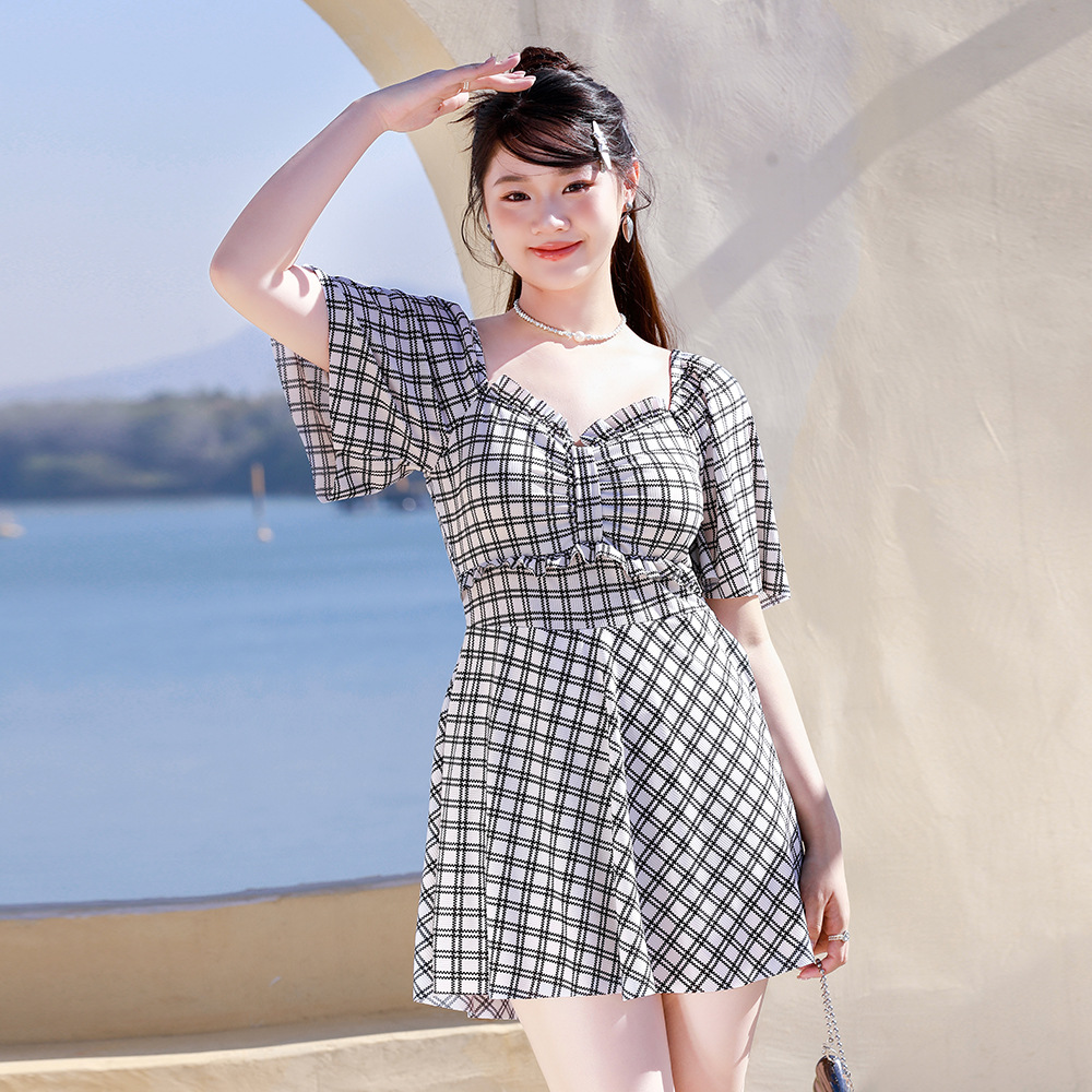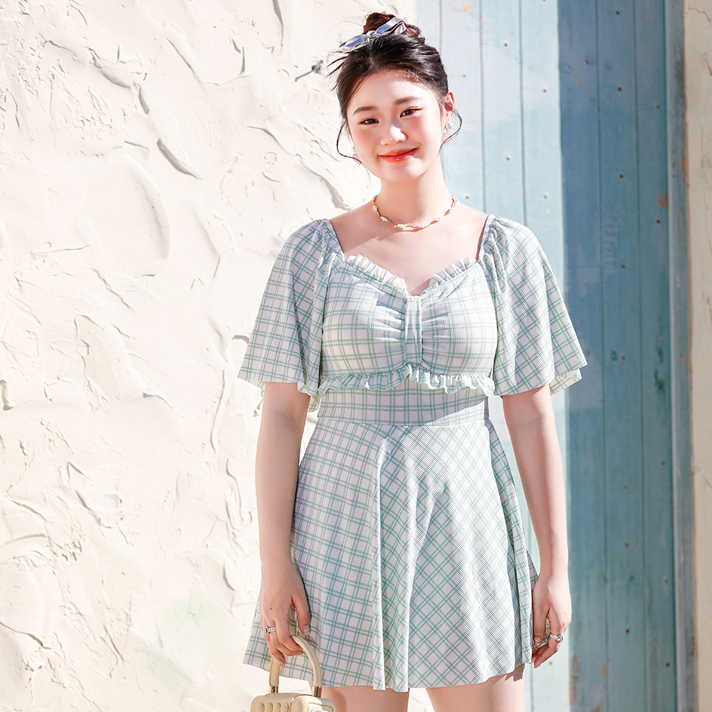 新款温泉游泳衣女加肥加大保守显瘦遮肉大码韩版胖妹游泳装女