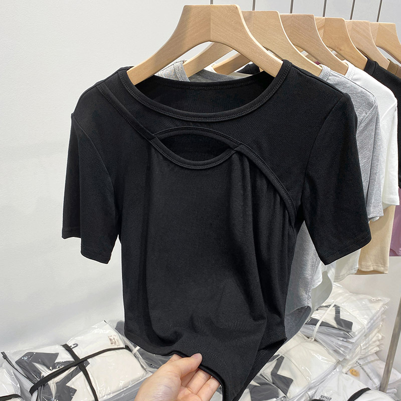 美式辣妹紧身显瘦短袖t恤女夏季新款镂空设计感小众短款高腰上衣