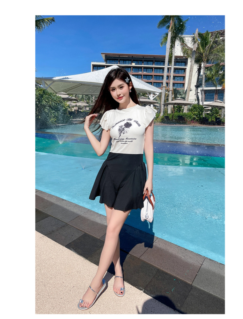 【学院少女】新款连体游泳衣女保守显瘦遮肚温泉青春学生泳装