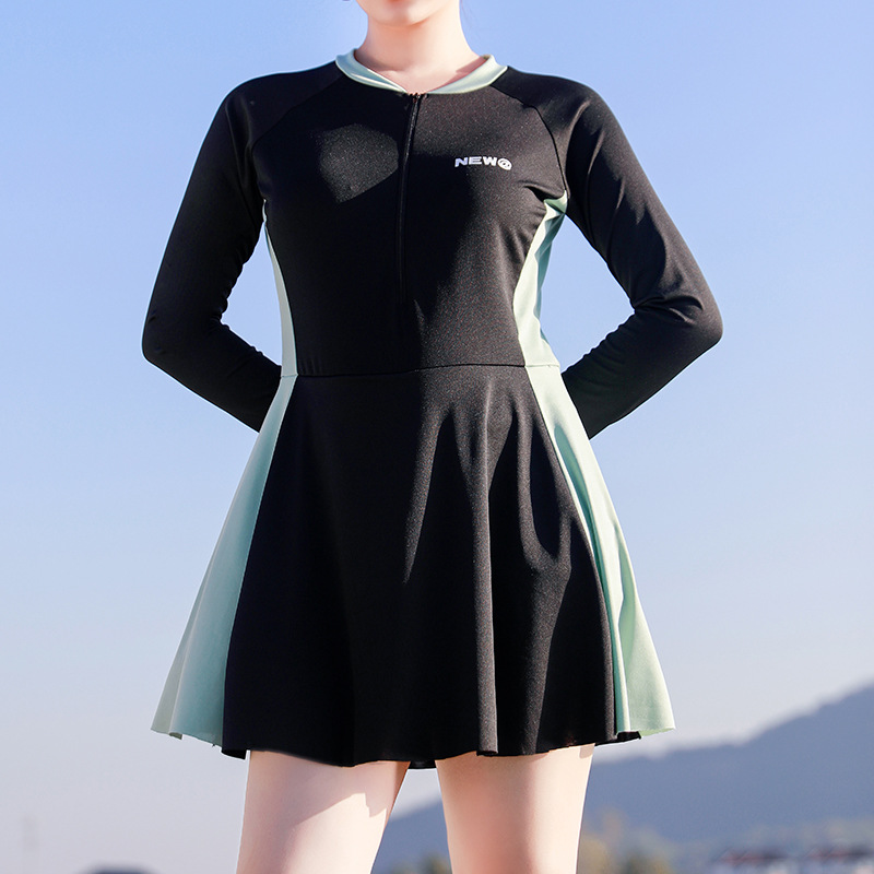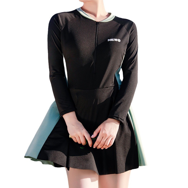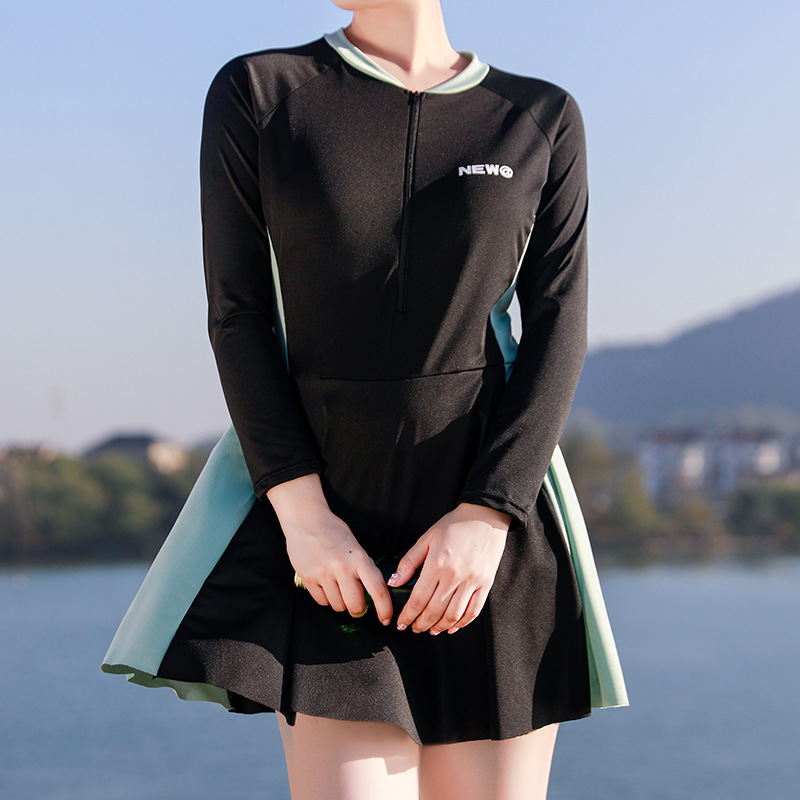 新款网红爆款运动泳衣女连体保守遮肚显瘦长袖大码学生游泳装