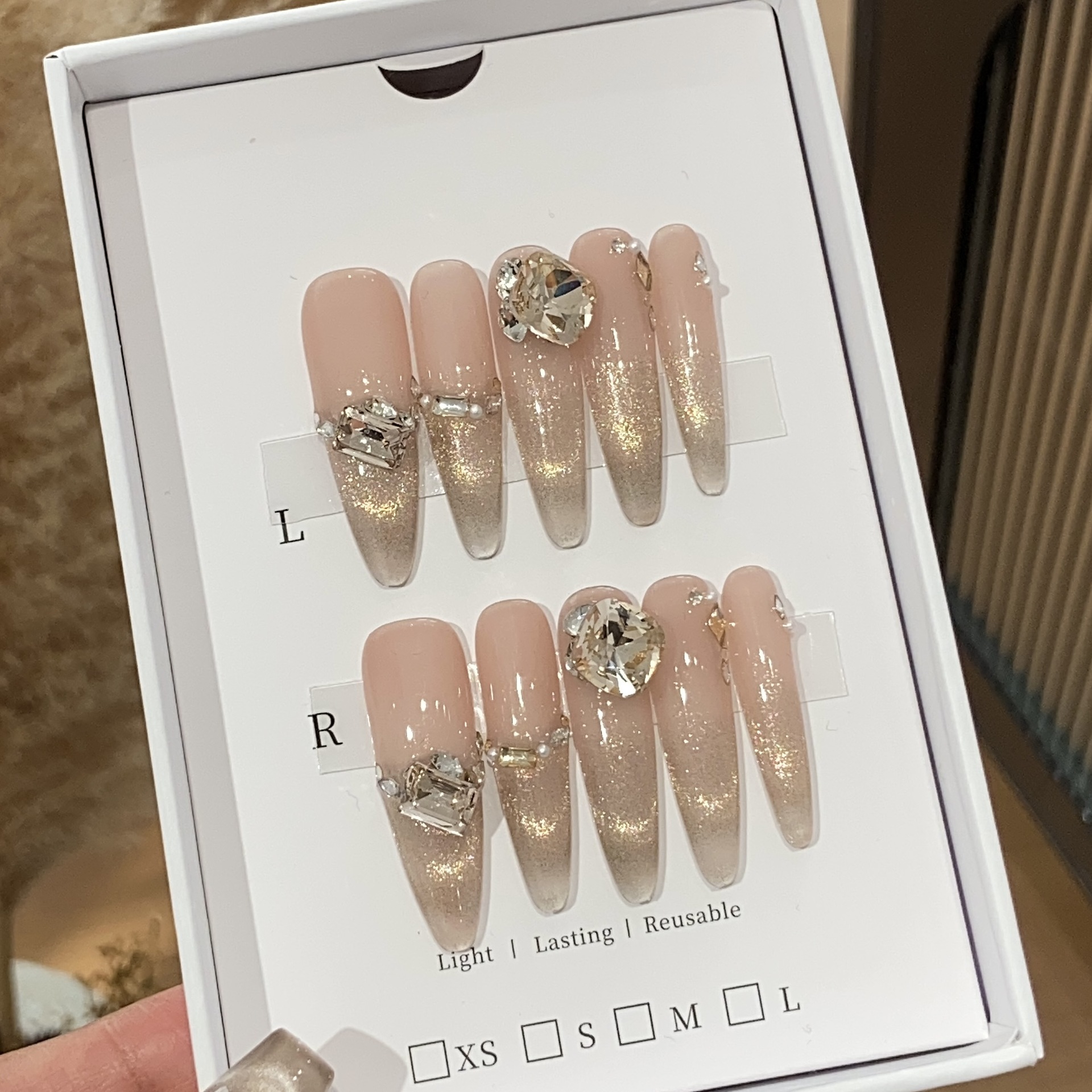 一只顾美甲 高级感裸色渐变金猫眼精品香槟K9方钻莉莉子穿戴甲