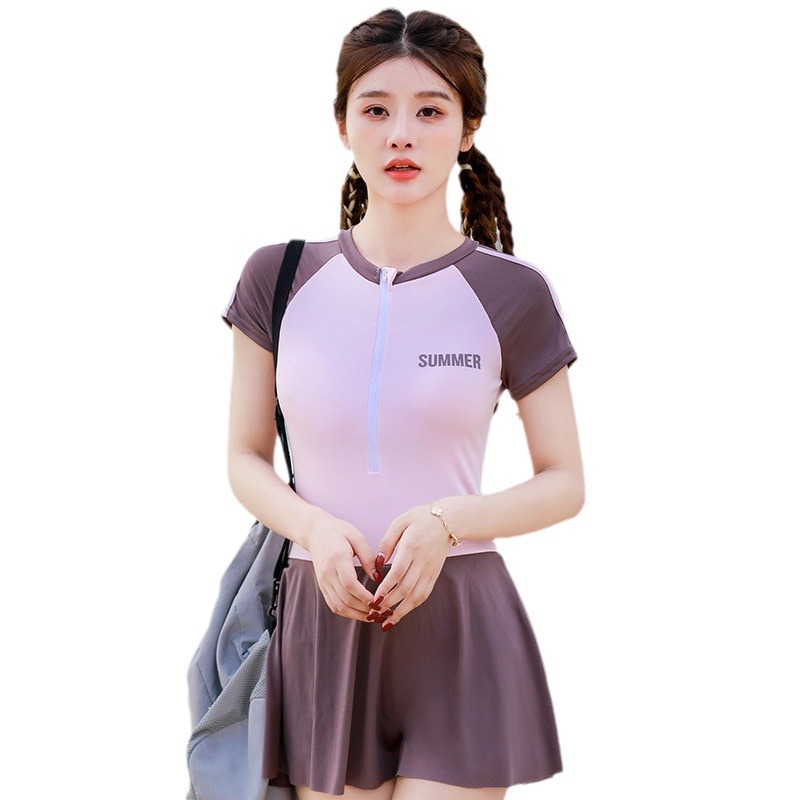 新款运动游泳衣女连体平角保守显瘦遮肚学生少女训练温泉泳装