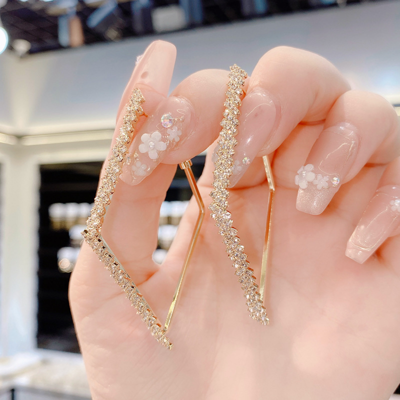 s925银针时尚个性夸张满钻菱形几何方块耳圈冷淡风高级感耳环耳饰