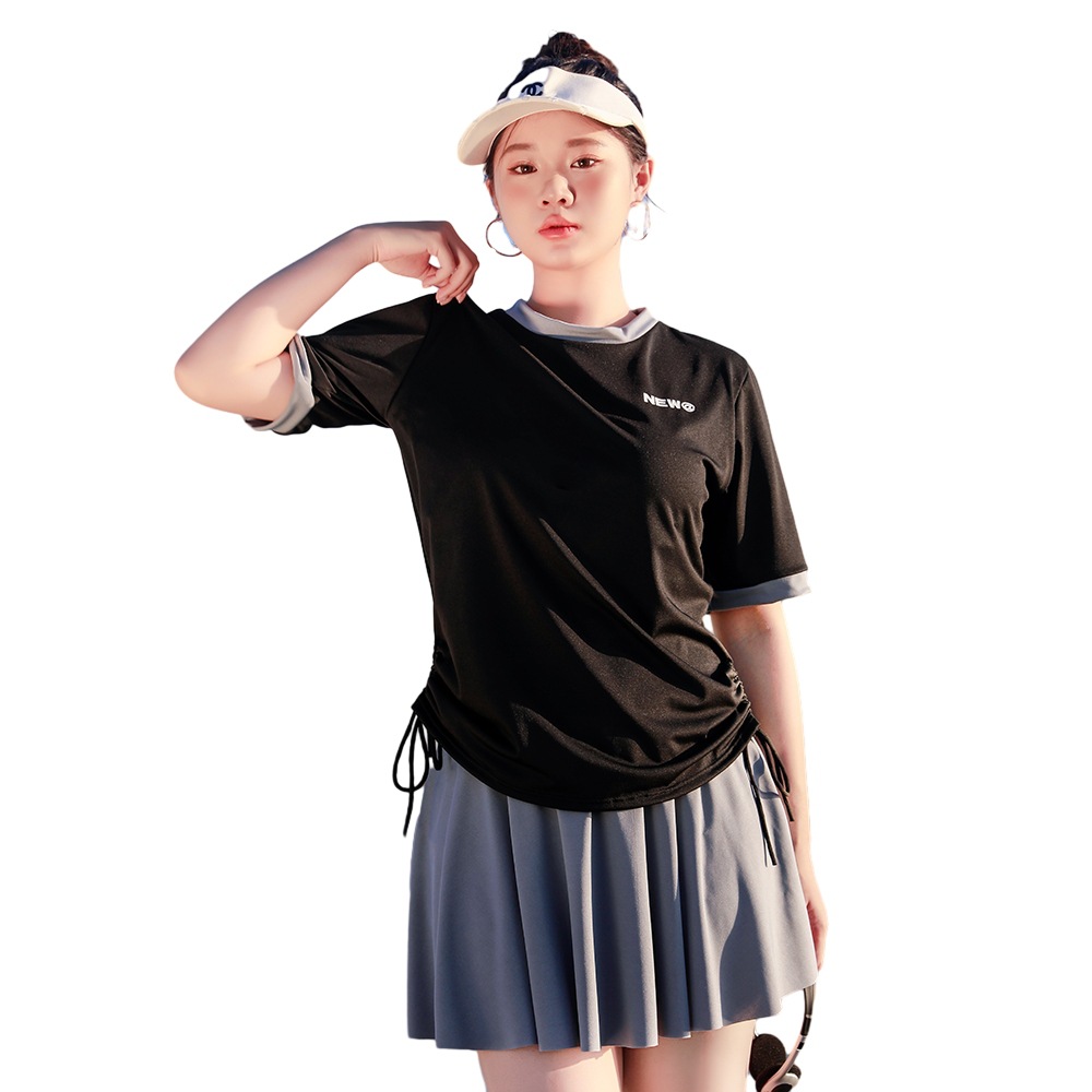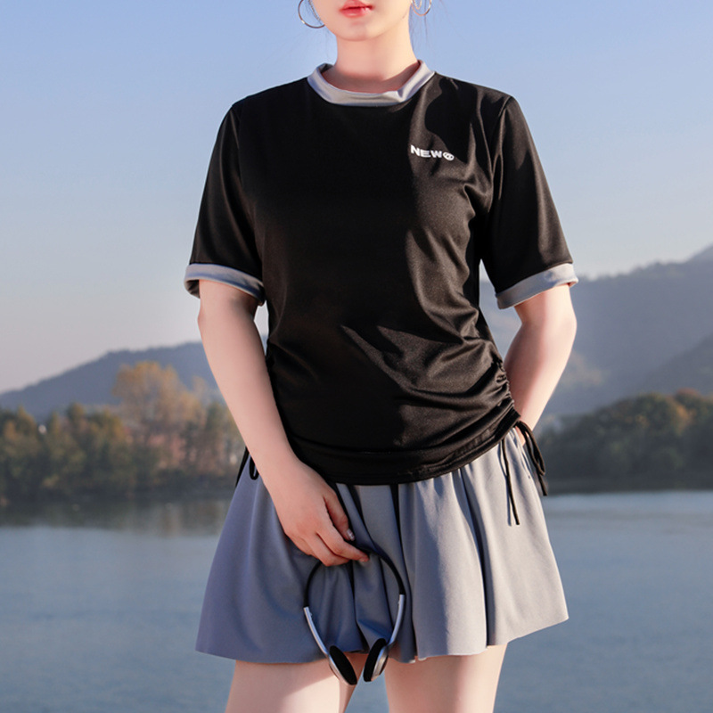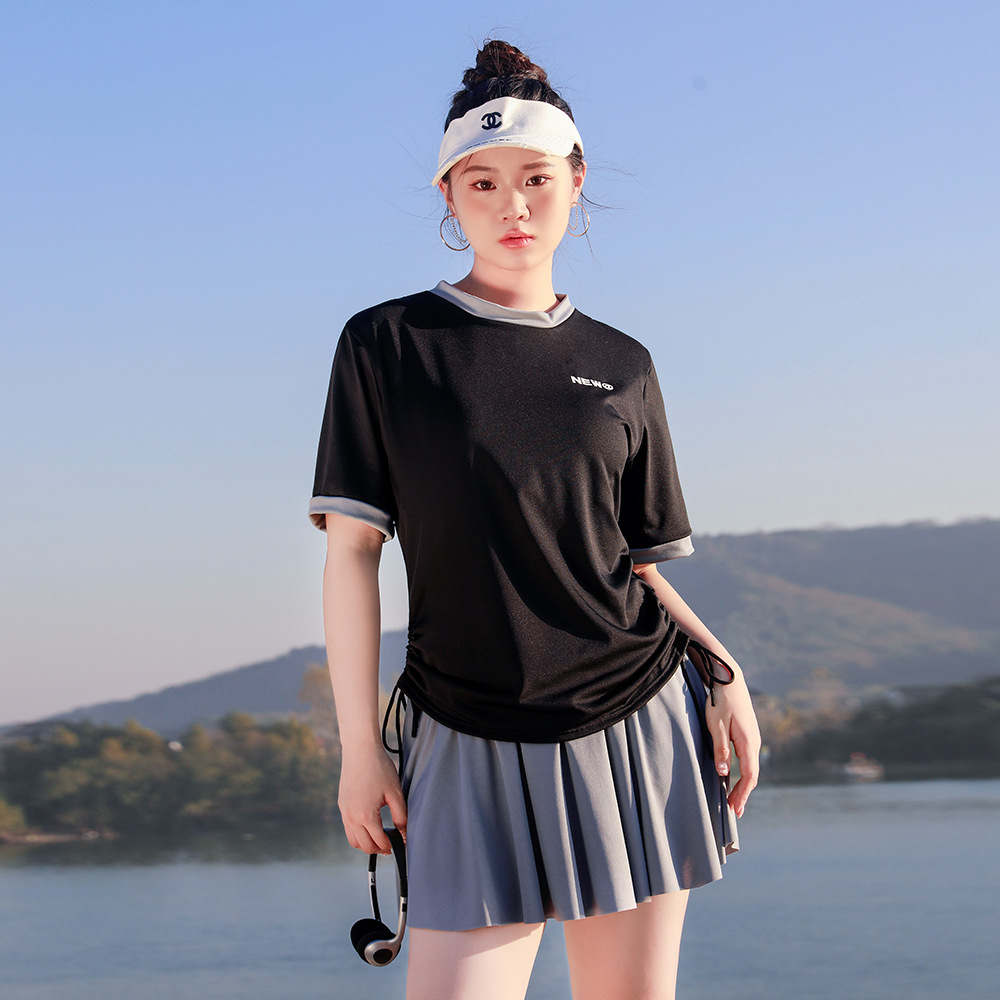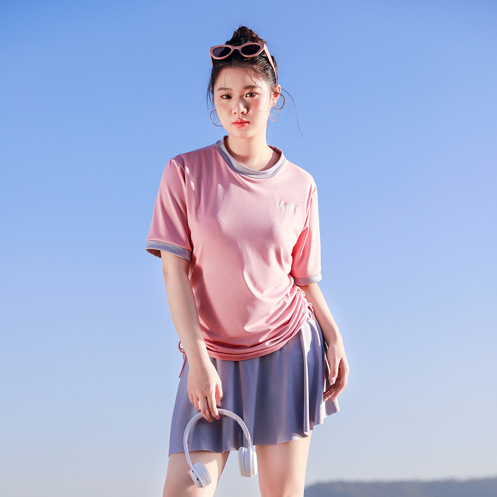 新款泳衣女分体式两件套温泉遮肚运动短袖显瘦性感韩版游泳装