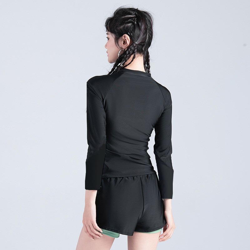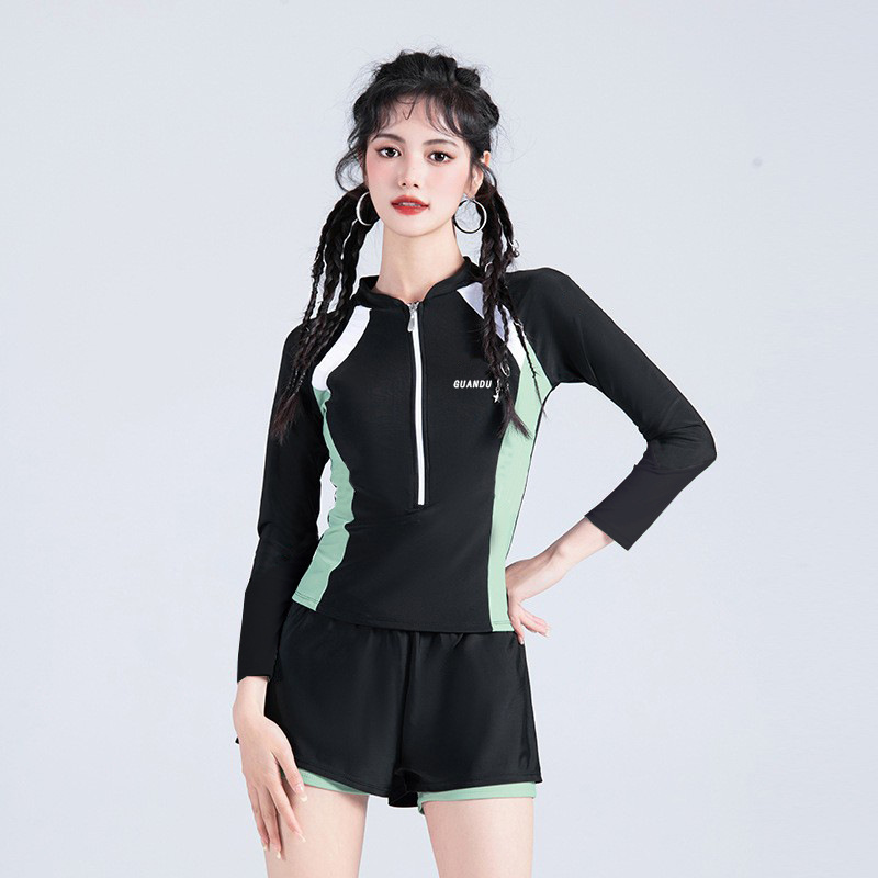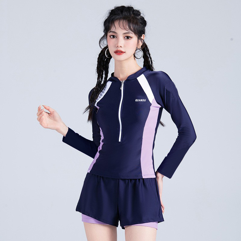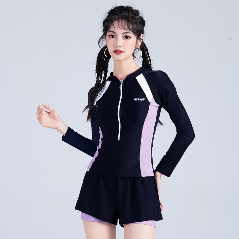 新款游泳衣女长袖保守显瘦遮肚运动训练甜妹温泉少女学生泳装