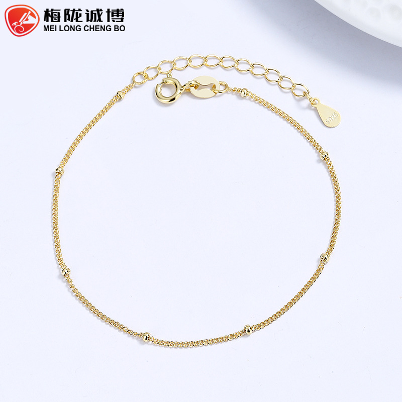 圆珠手链女极简约ins风925纯银细马鞭链子小众设计豆豆侧身链手饰