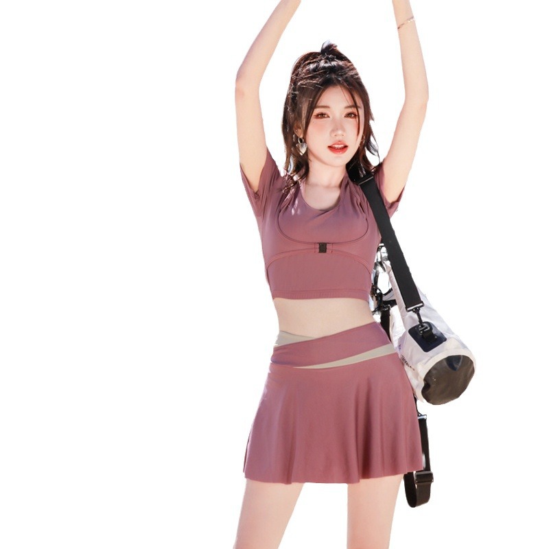 【活力少女】运动游泳衣女假两件健身瑜伽分体裙式温泉学生游泳装