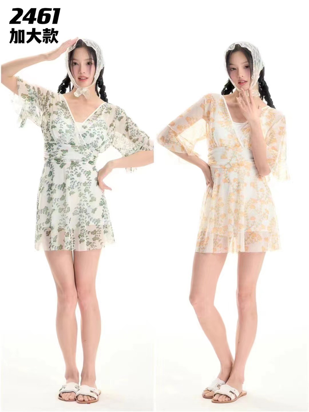 新款连体裙式游泳衣韩国小碎花保守学院风显瘦泡温泉泳装度假