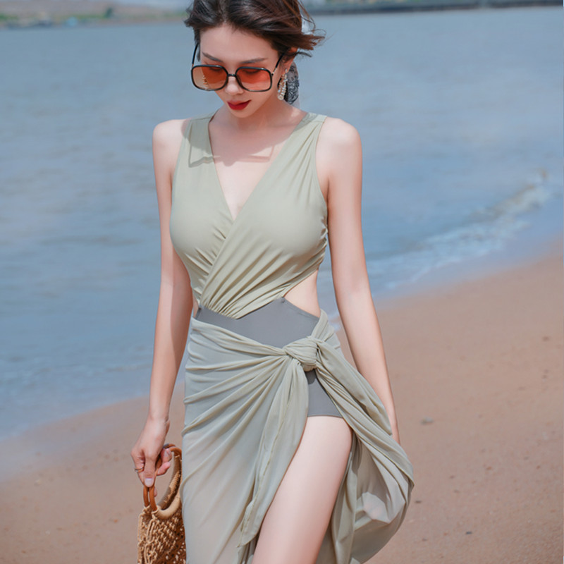 新款游泳衣女连体比基尼两件套保守显瘦遮肚性感韩国温泉泳装