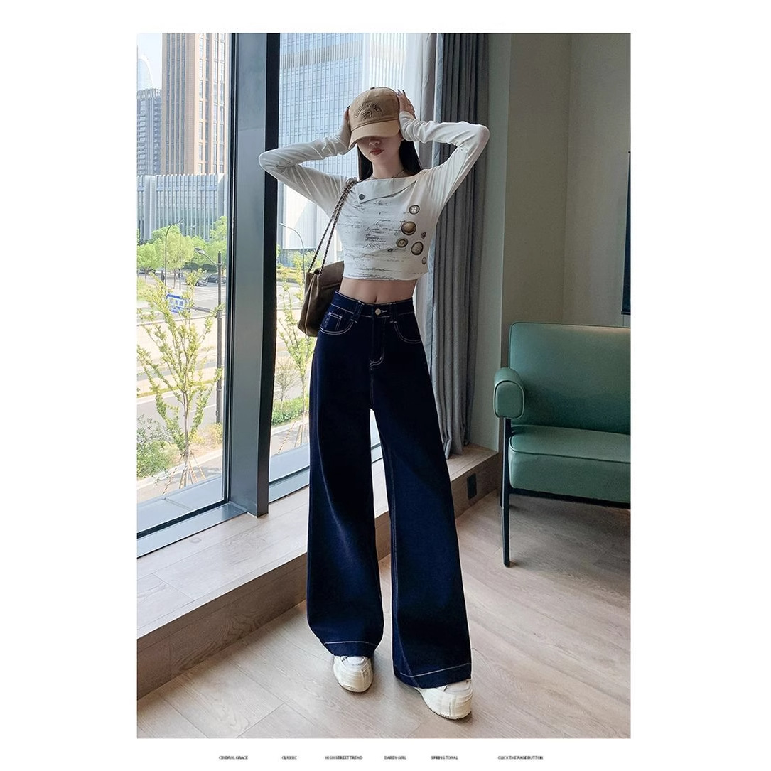 韩版阔腿牛仔裤女2025年春秋季新款高腰垂感慵懒休闲拖地裤