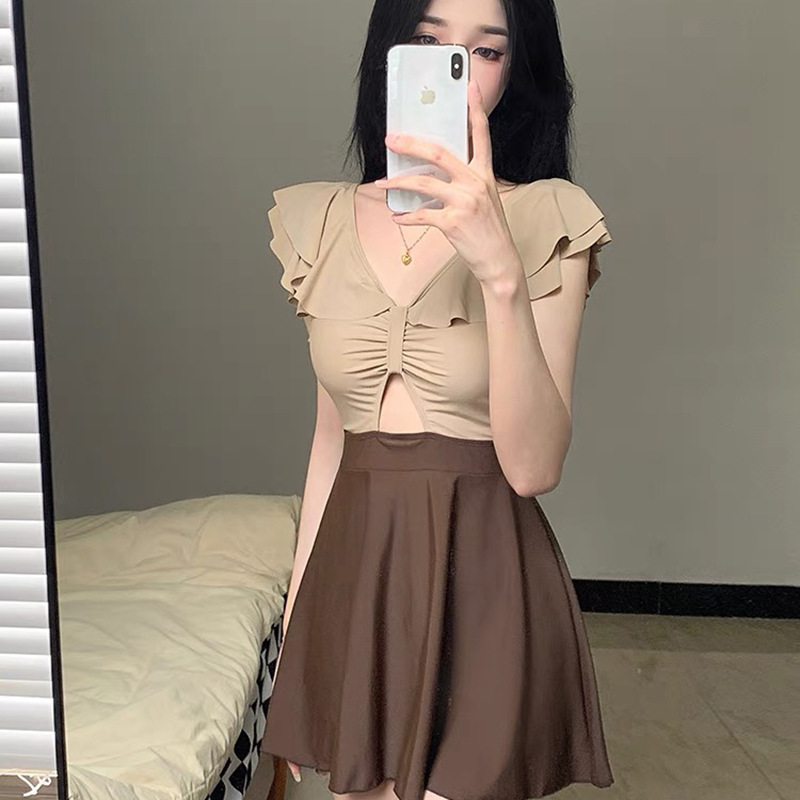 新款大码分体裙式平角显瘦遮肚泳装大小胸聚拢泡温泉度假女游泳衣