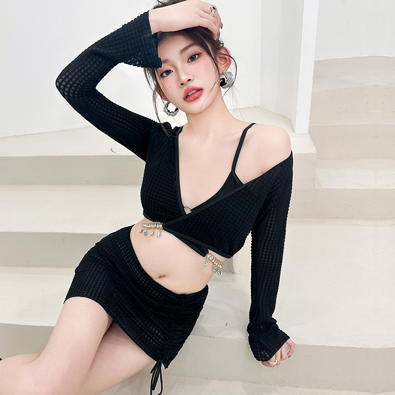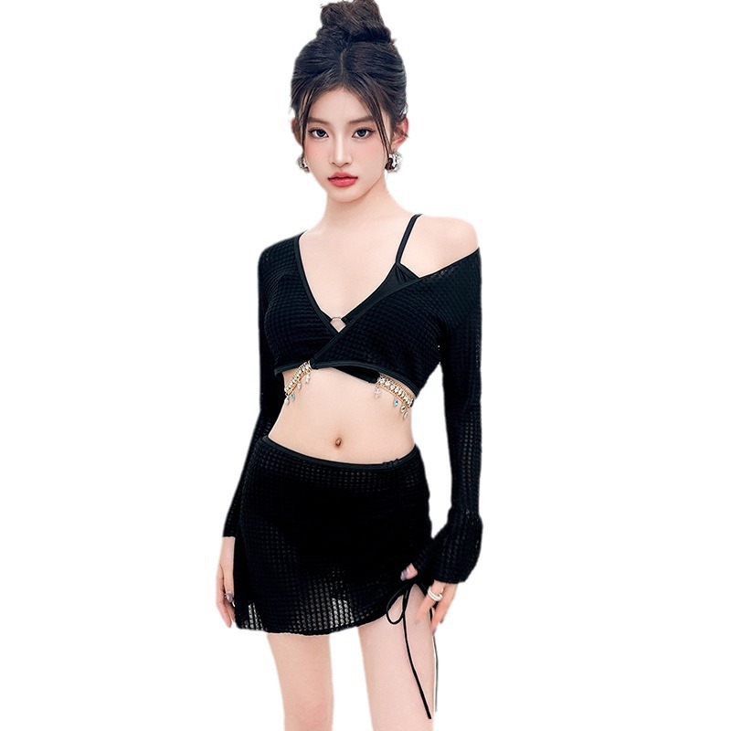 新款bikini分体渔网性感比基尼四件套温泉韩国网红爆款泳装女