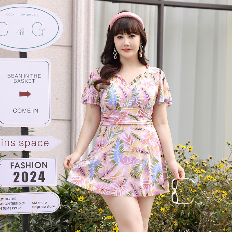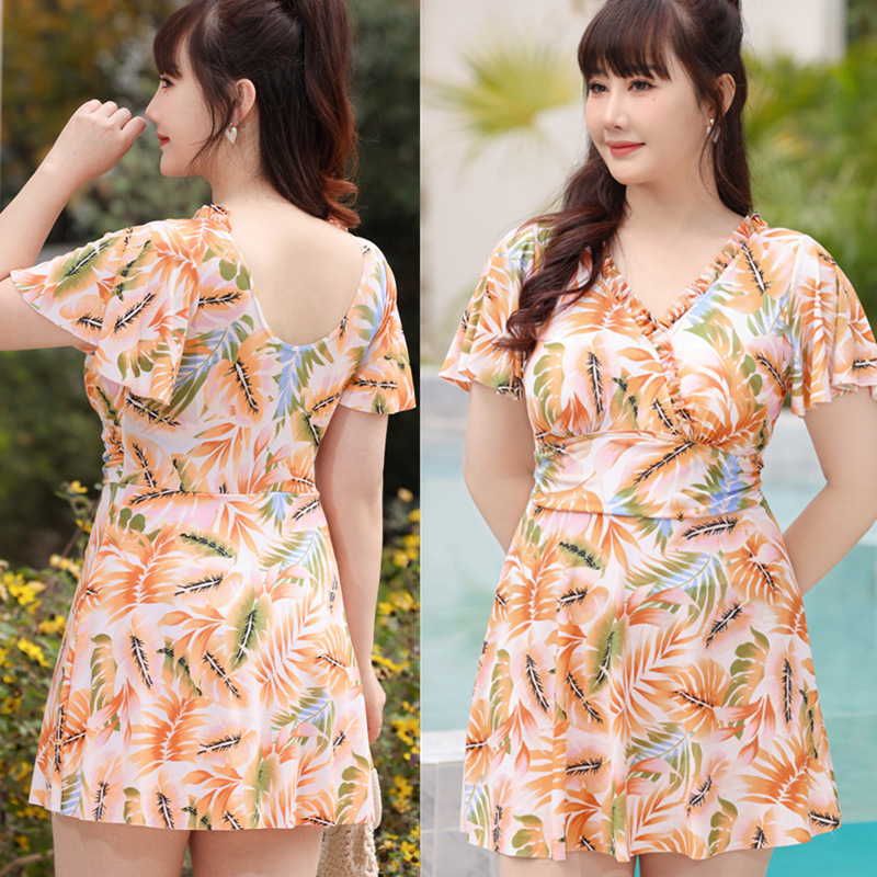 新款连体泳衣女泡温泉泳装大码胖mm遮肚显瘦韩版ins保守泳装