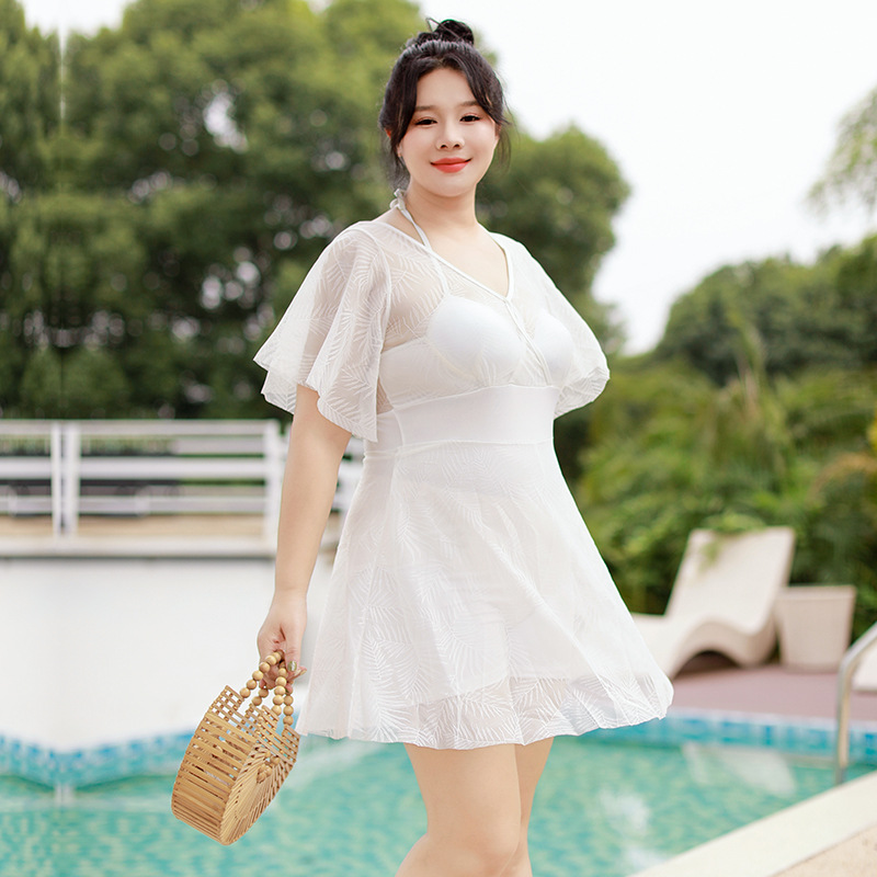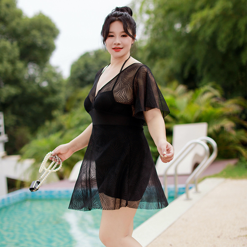 温泉泳衣女新款大码连体平角胖MM韩版新款加肥宽松遮肉游泳衣