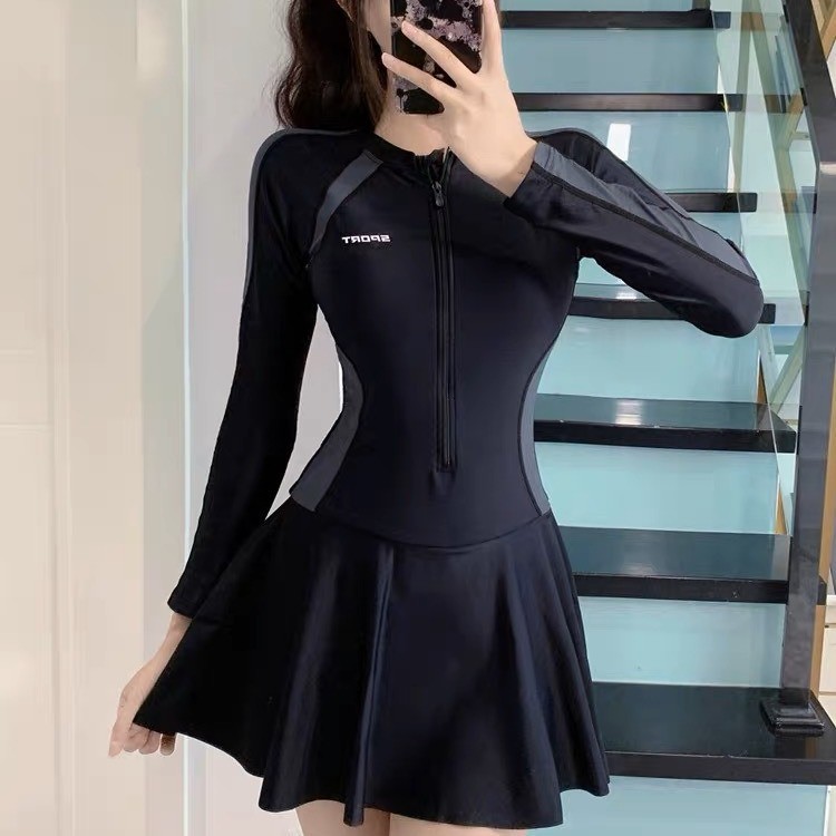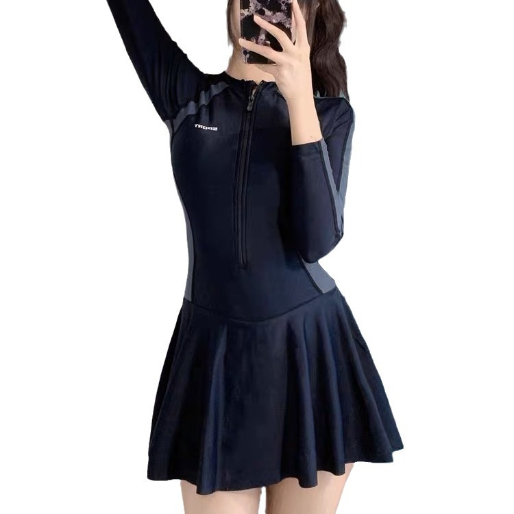 新款游泳衣女运动连体保守显瘦遮肚长袖温泉学生韩国时尚泳装女