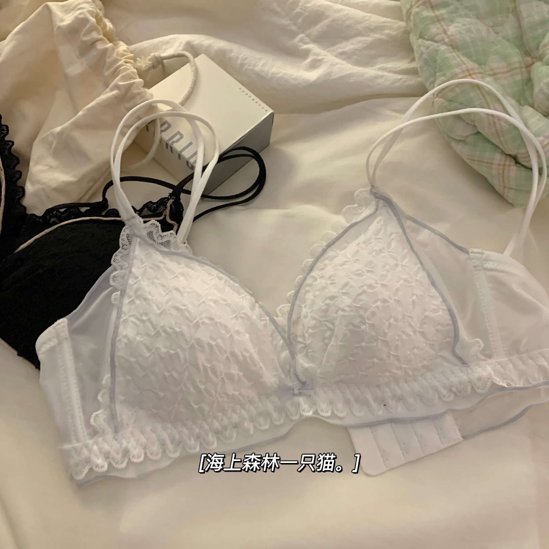 美背内衣女小胸聚拢无钢圈调整型日系蕾丝少女薄款白色文胸罩套装