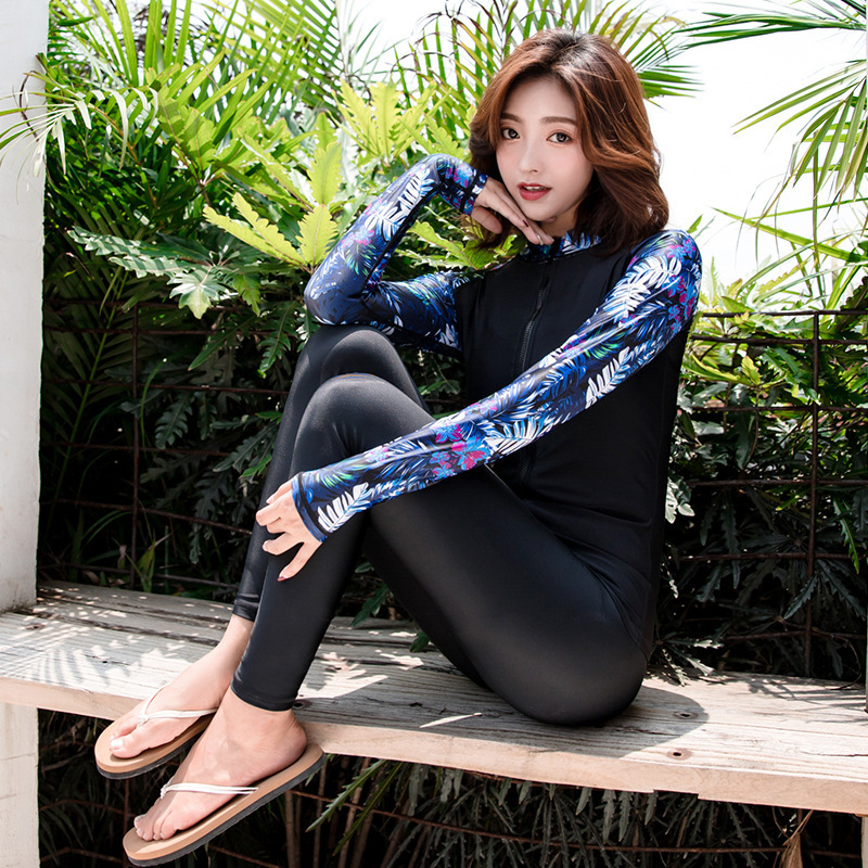 新款泳衣女士保守潜水服泳装游泳衣分体长袖显瘦修身保守泳衣