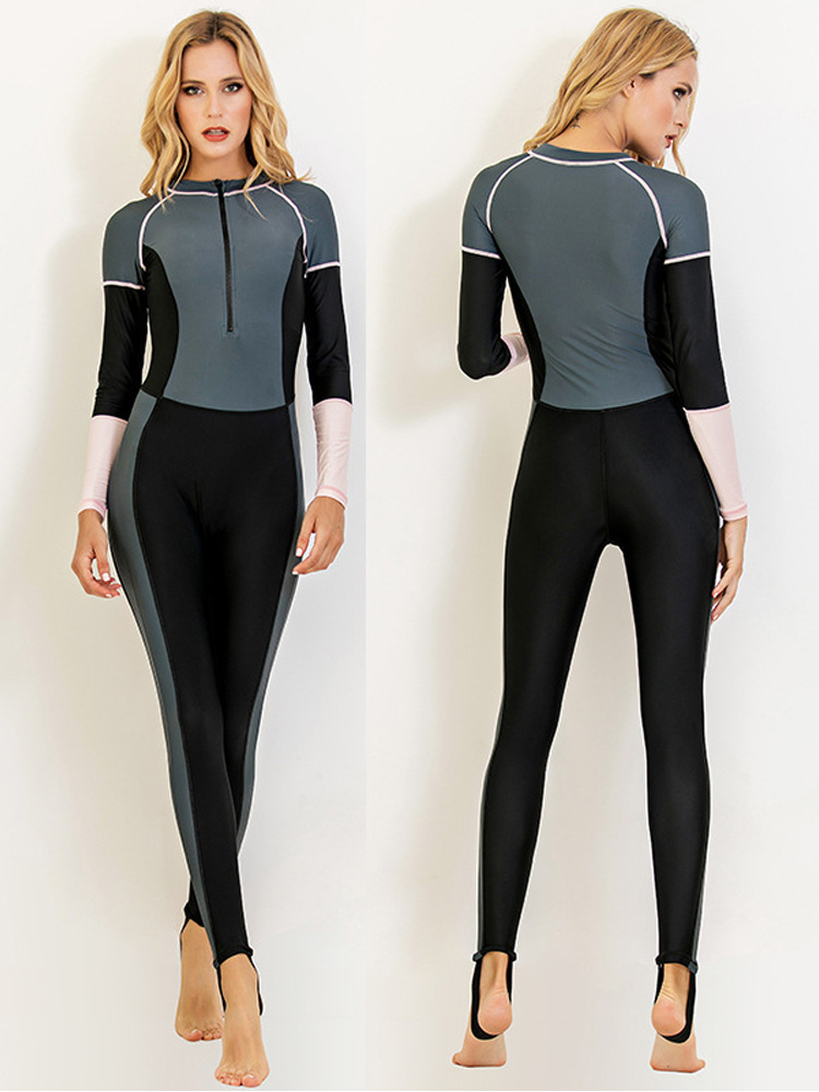 鲨巴特新品女款连体潜水服防晒长袖泳衣浮潜服显瘦修身保守泳装
