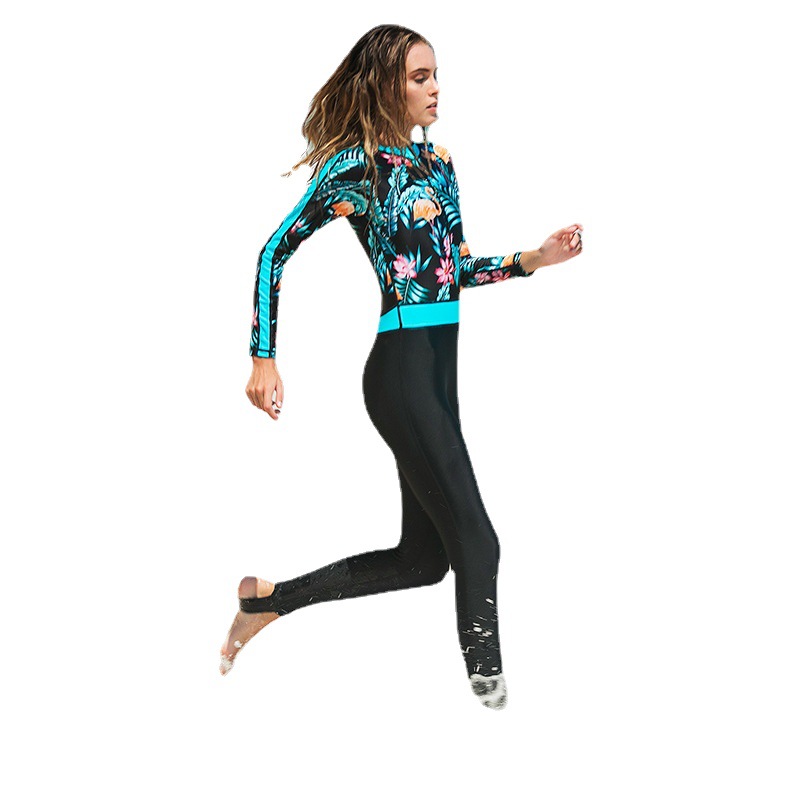 鲨巴特欧美女款连体潜水服长袖防晒游泳衣速干显瘦保守修身泳衣女