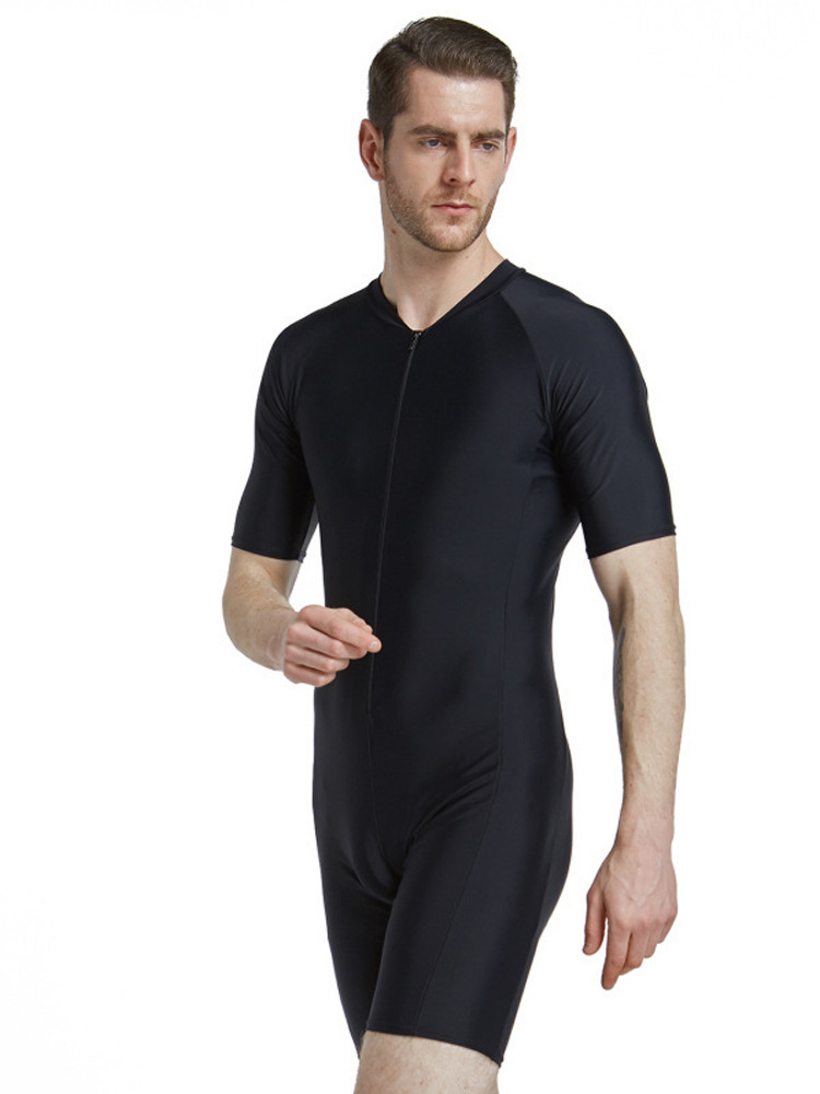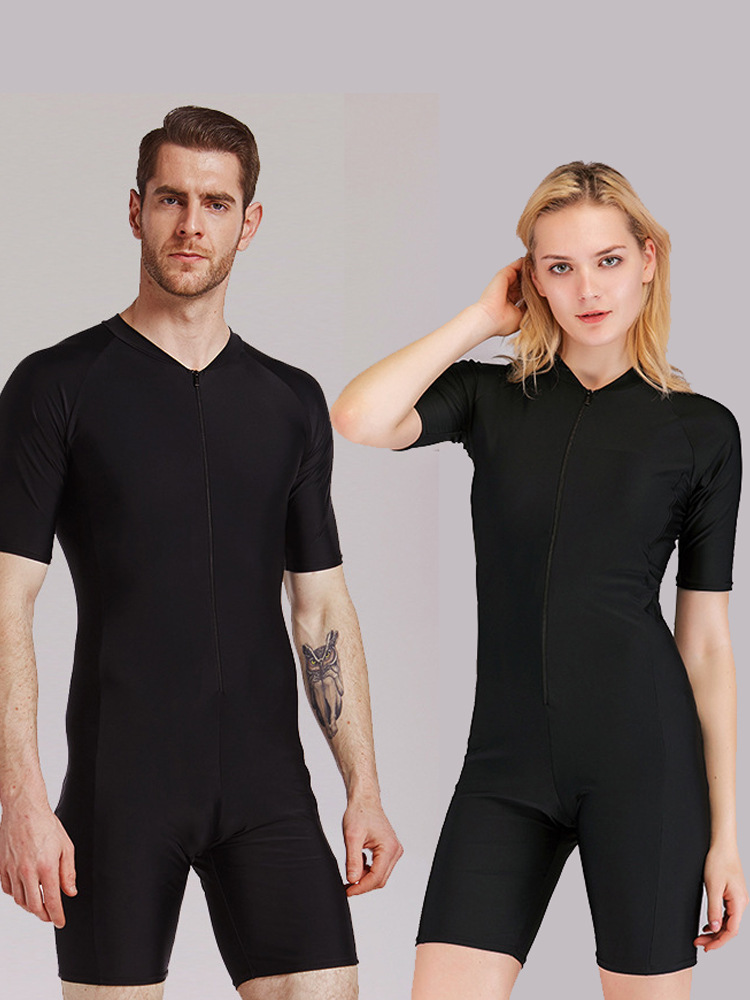 鲨巴特新男女款短袖连体泳衣显瘦舒适贴身防晒速干游泳衣情侣