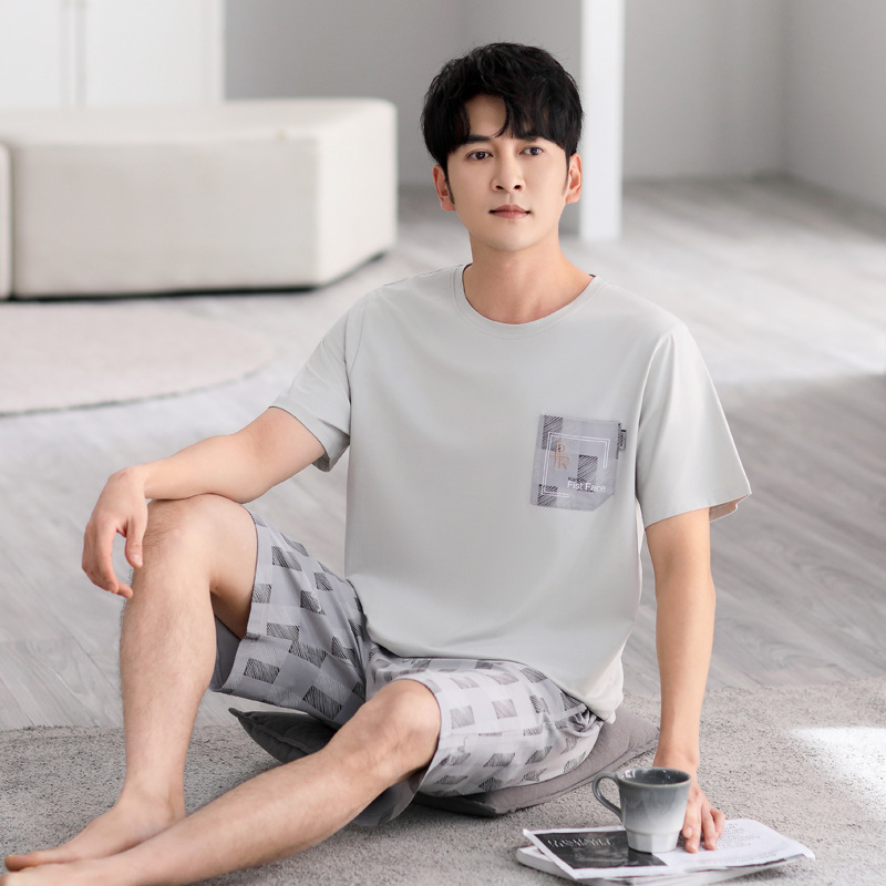 纯棉睡衣春夏男士短裤短袖圆领薄款家居服宽松大码运动套头休闲服