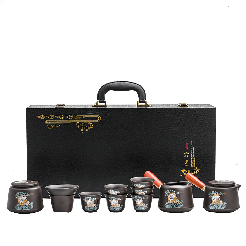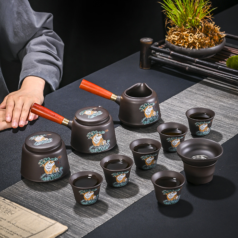 11头紫砂侧把虎啸山林