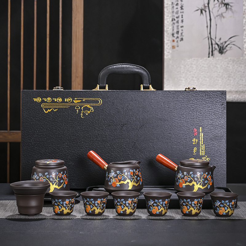 11头紫砂侧把柿柿如意