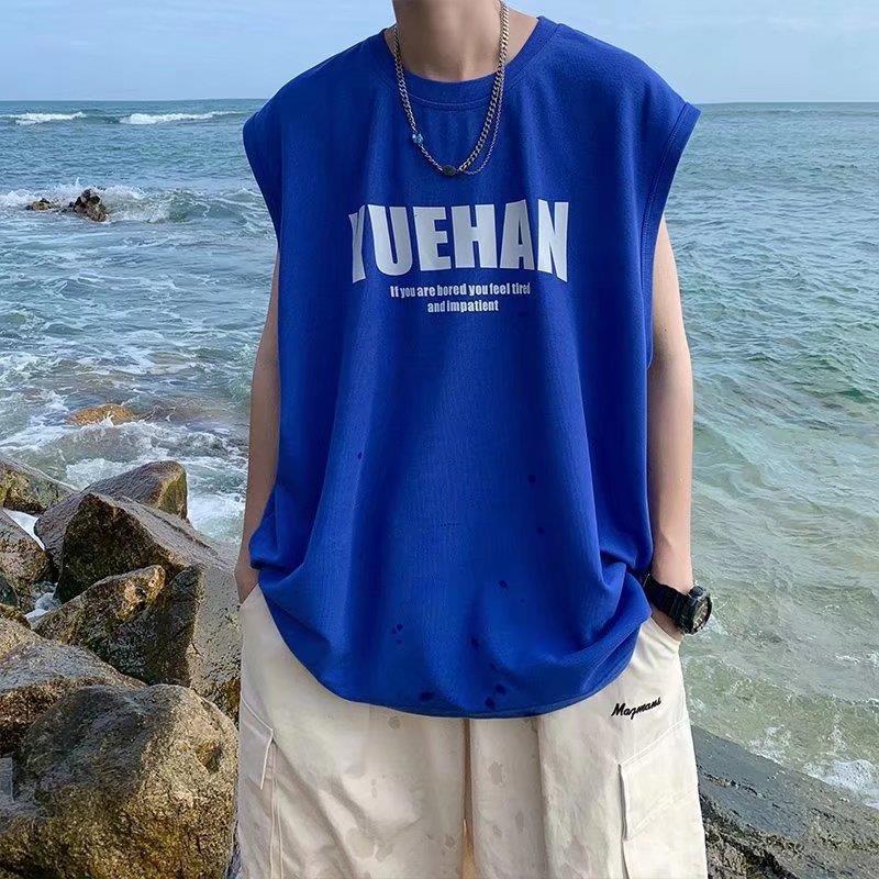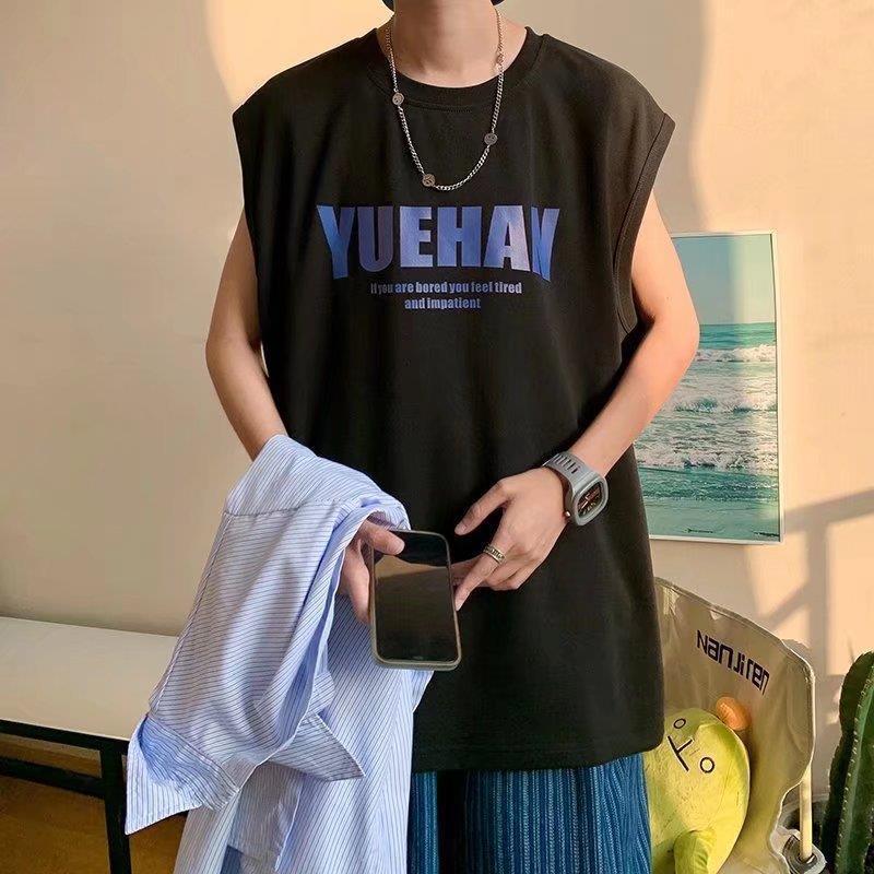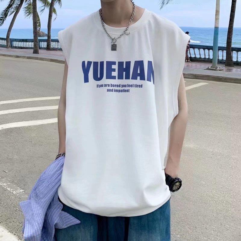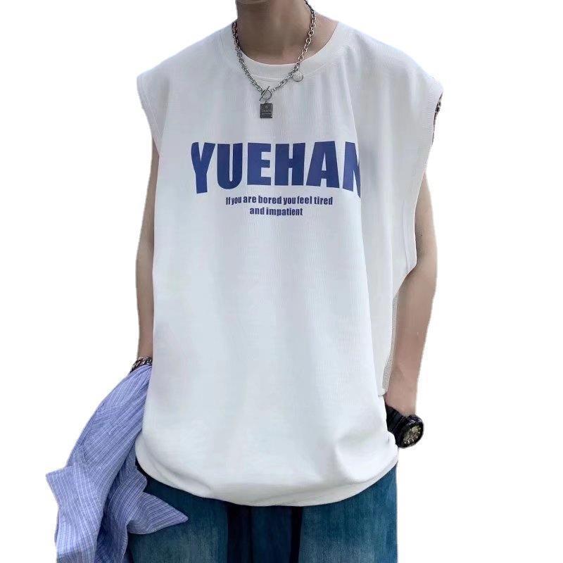 男士背心港风夏季新款印花坎肩潮流外穿宽松帅气运动健身上衣