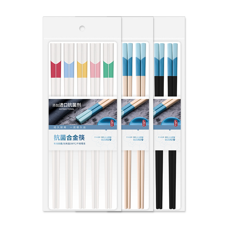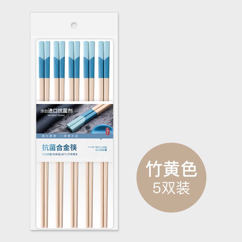 G096C竹黄色流光溢彩抗菌合金筷(蓝蓝)5双装