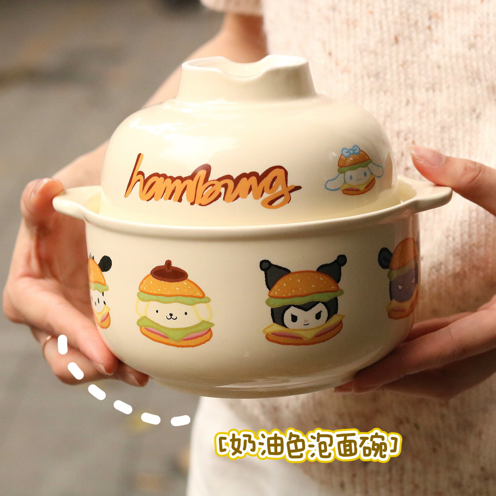 可爱汉堡卡通带盖泡面碗少女心早餐碗
