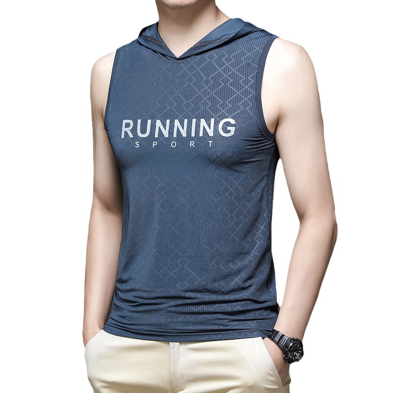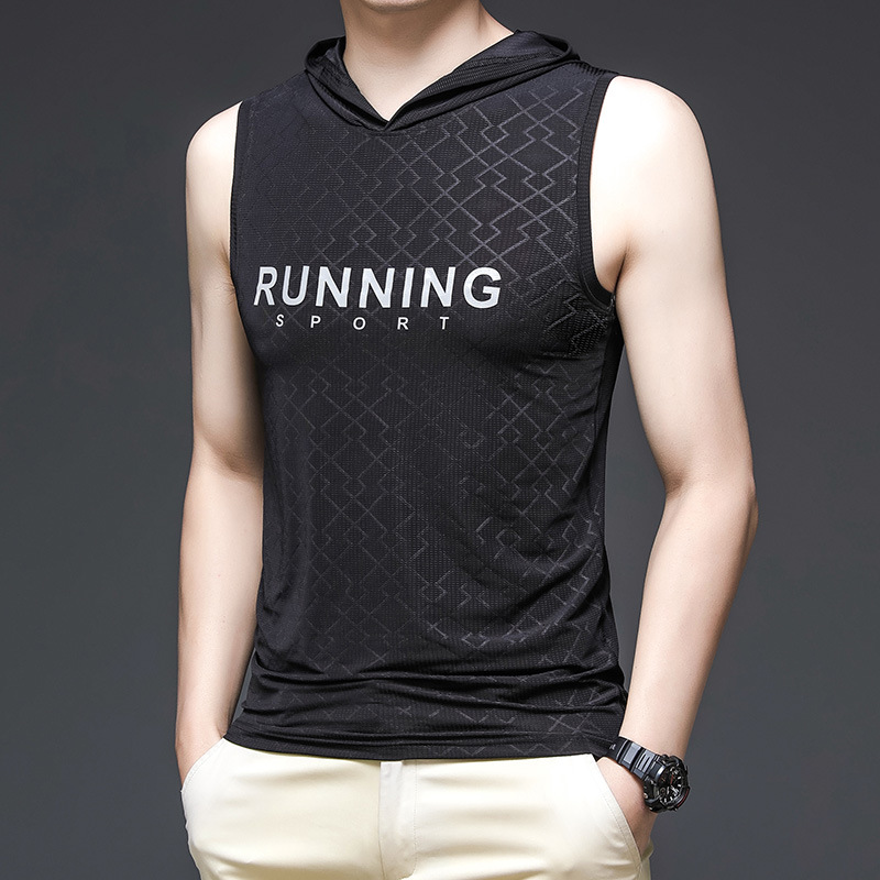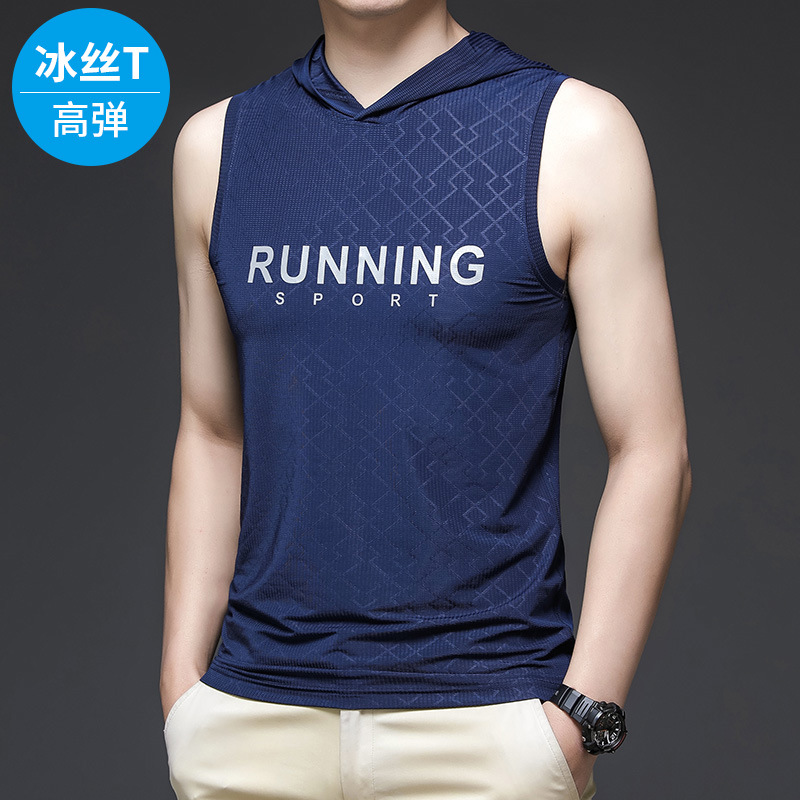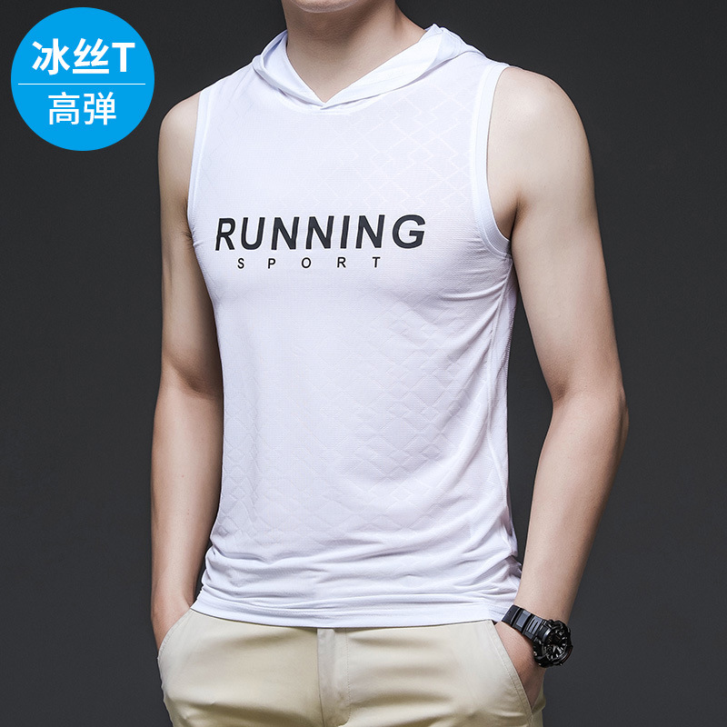 冰丝背心男夏季潮牌薄款男装速干男士衣服男生运动连帽t恤服装