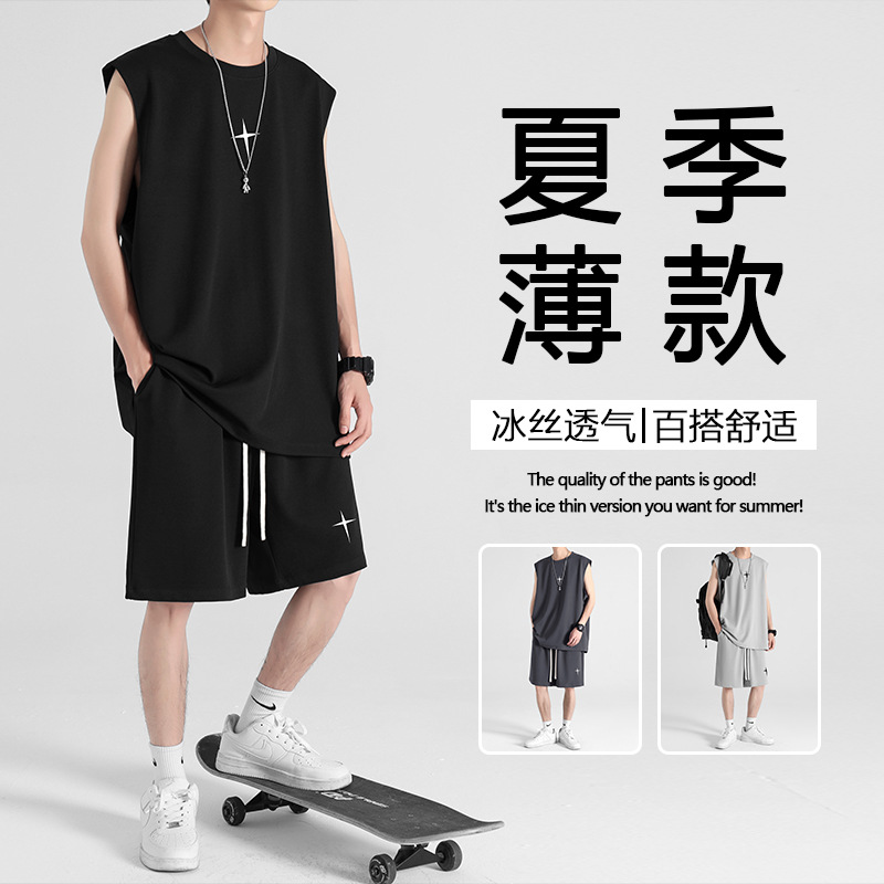 运动套装男夏季健身坎肩衣服无袖背心打底衫男款速干男装男士套装