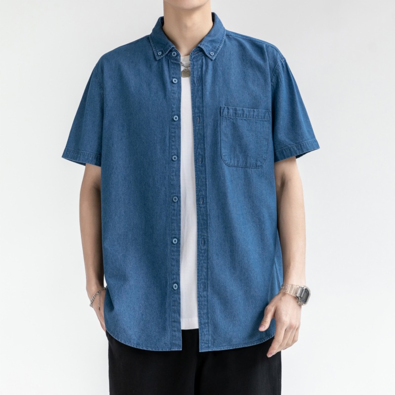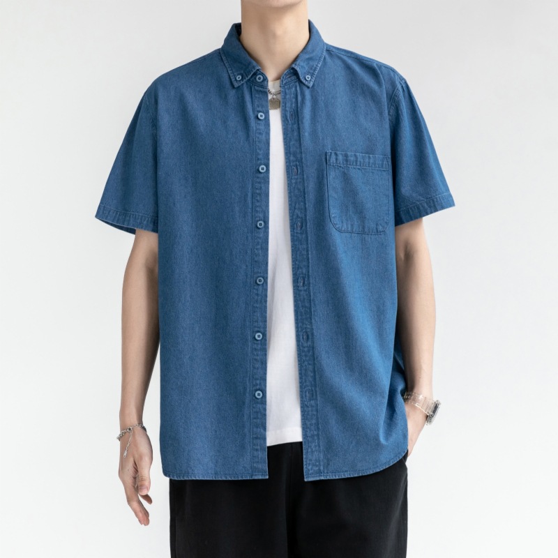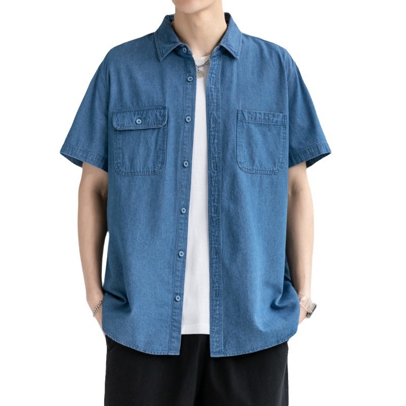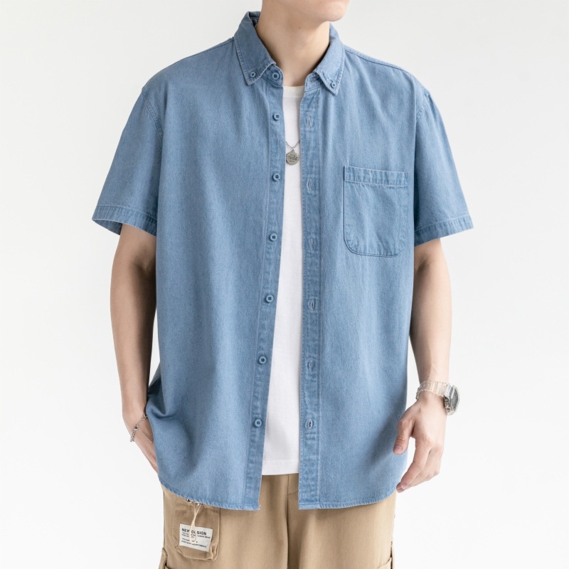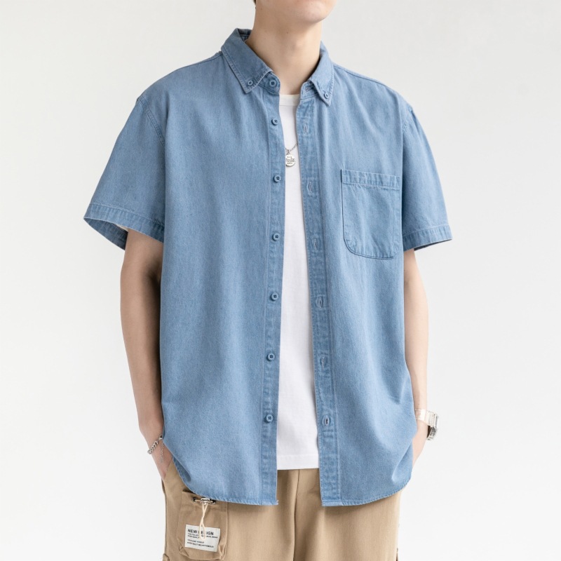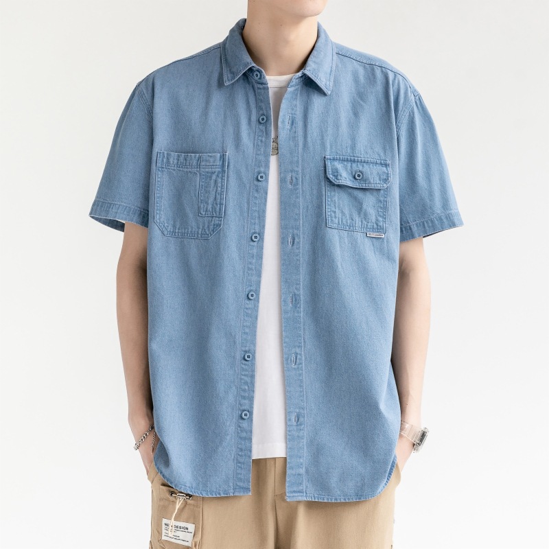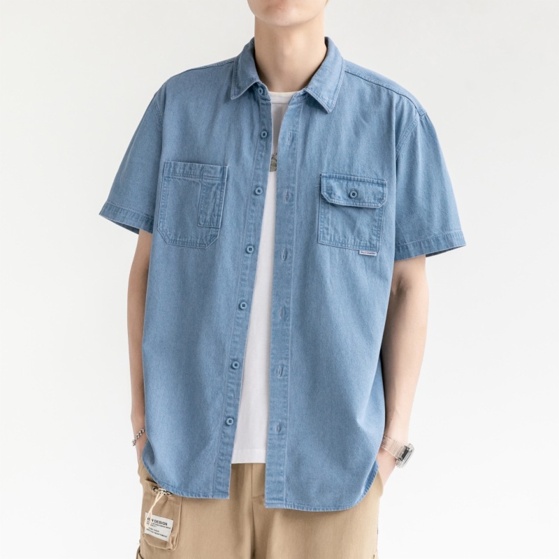 短袖男夏季新款韩版潮牌男装休闲牛仔衬衣衣服工装外套潮男士衬衫