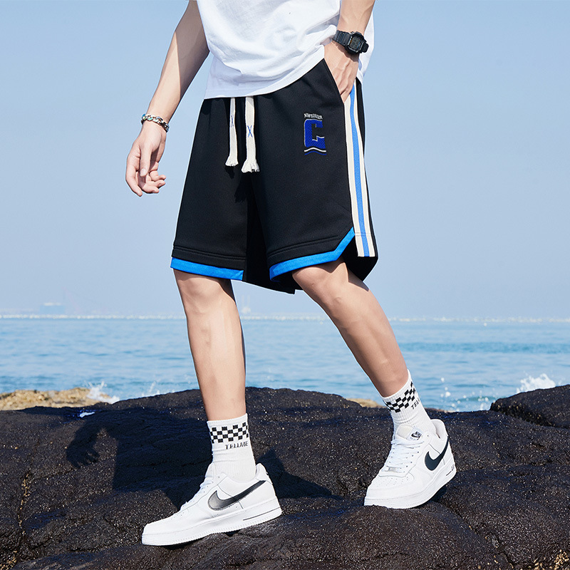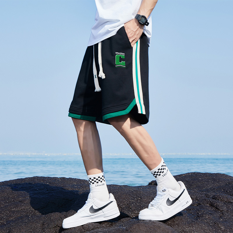 刺绣短裤男士夏季潮牌大码休闲裤衩宽松男装重磅中筒运动五分裤男