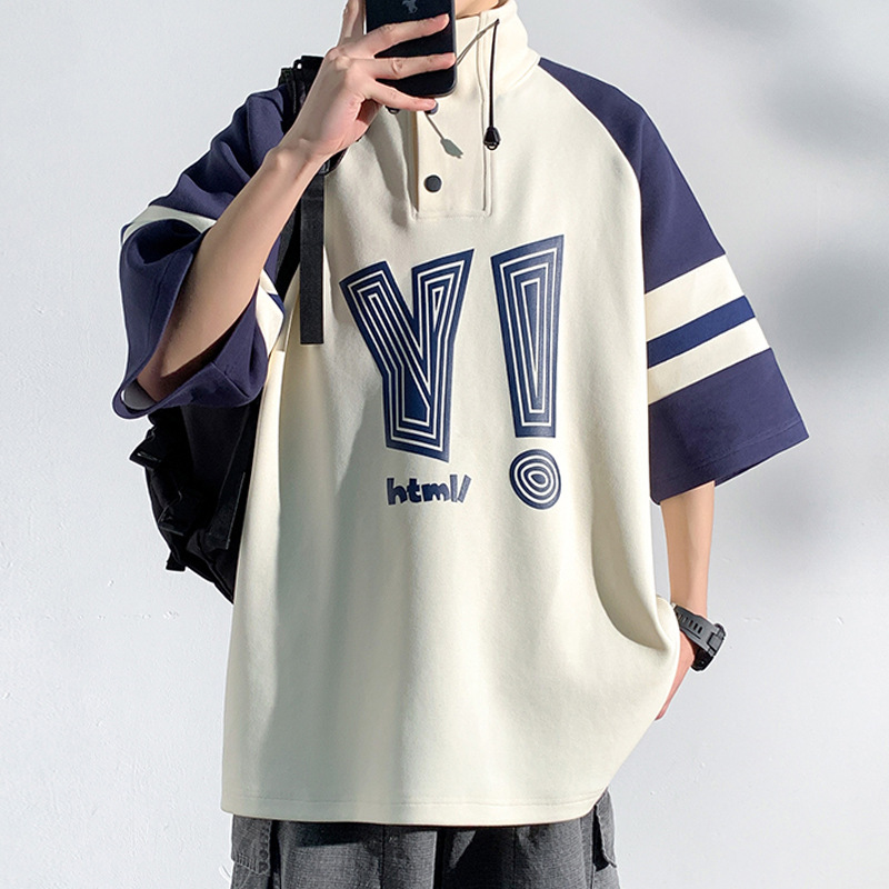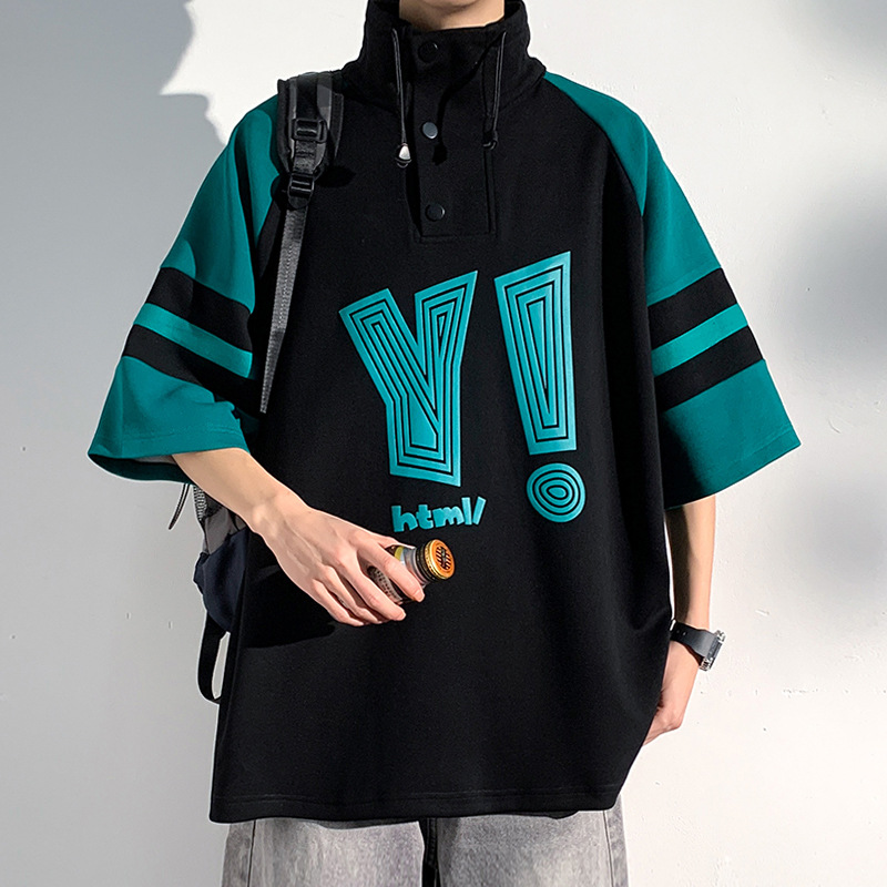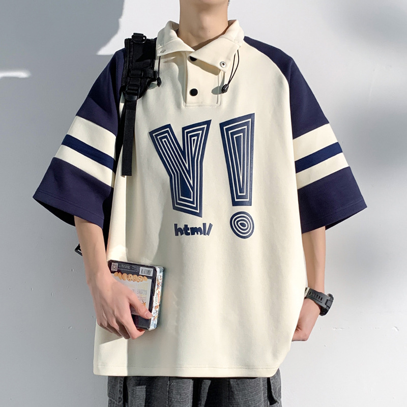 T恤男夏季新款潮牌男装开衩排扣衣服翻领POLO衫港风男士上衣