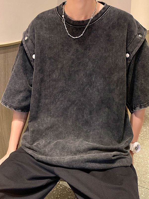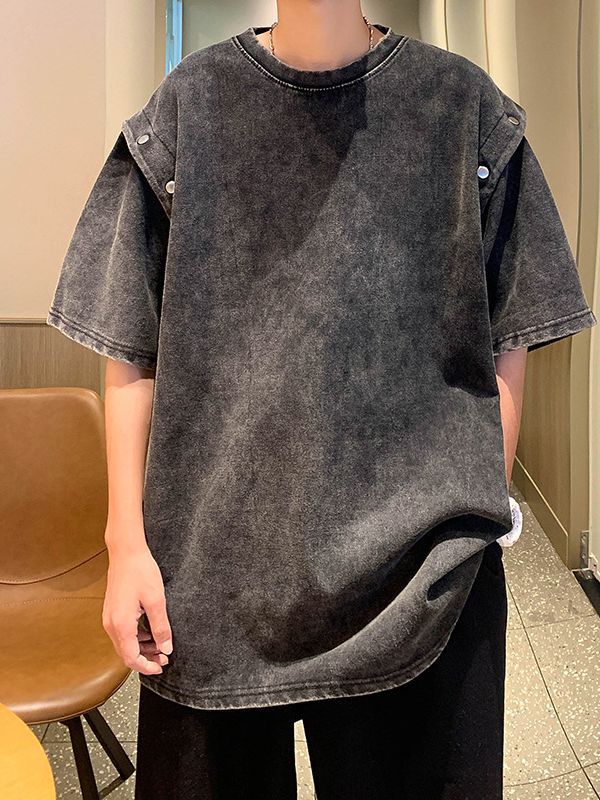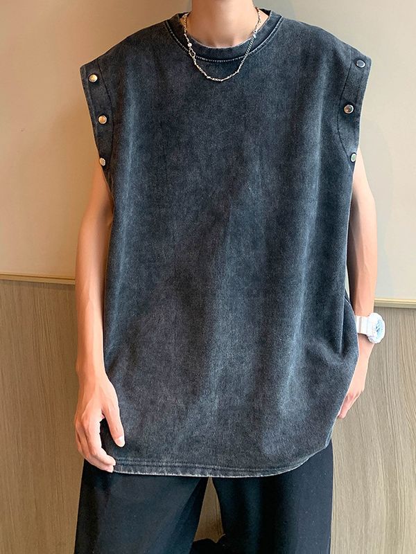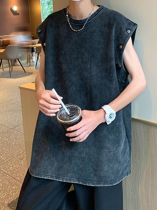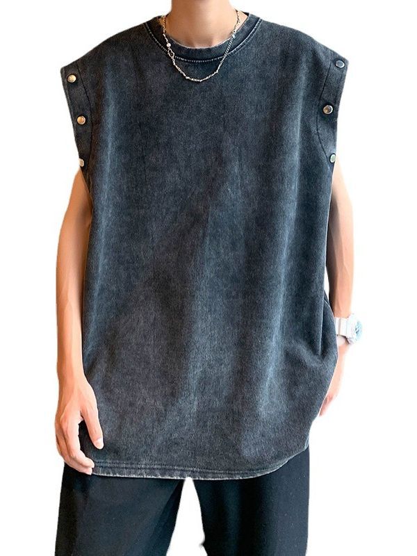美式复古重磅洗水做旧可拆卸袖子短袖t恤男oversize宽松背心无袖