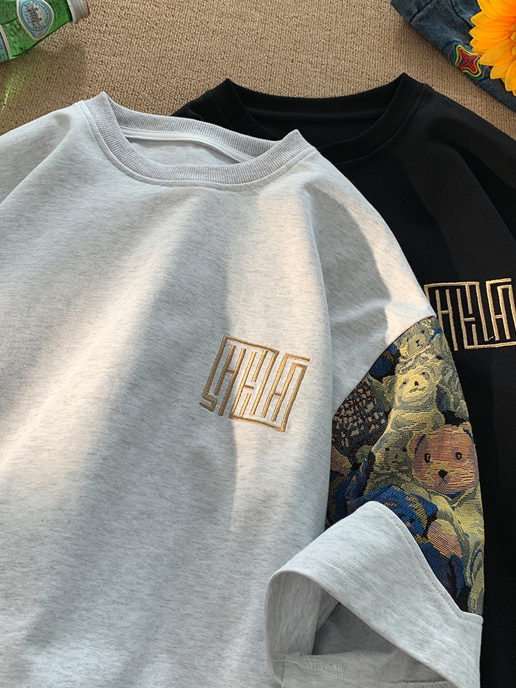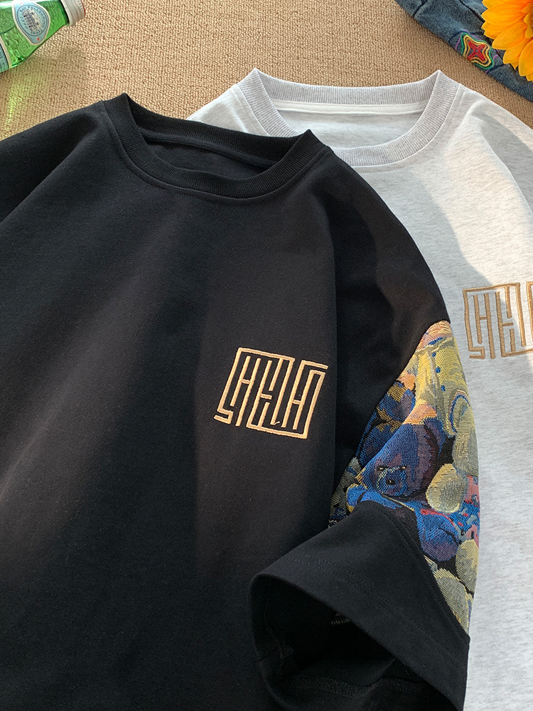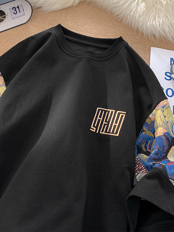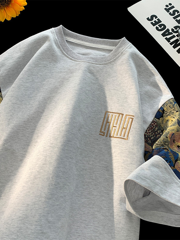 新中式短袖t恤男士夏季薄款潮牌宽松圆领棉复古半袖休闲上衣服潮