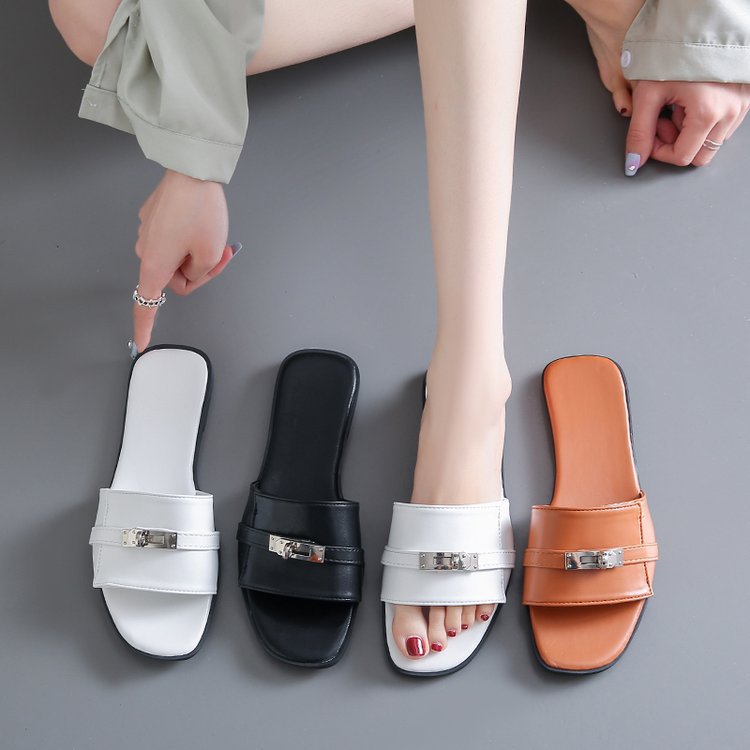 夏季新款韩版平底拖鞋女外穿露趾一字拖时尚休闲凉拖