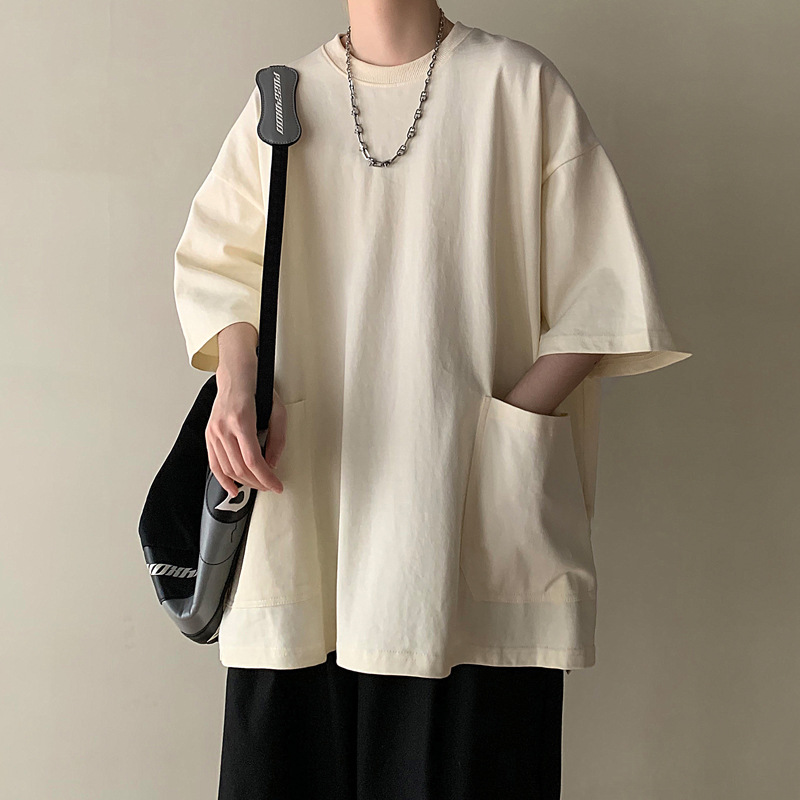 工装t恤男短袖oversize潮牌潮流美式复古5五分半袖重磅高街夏季潮