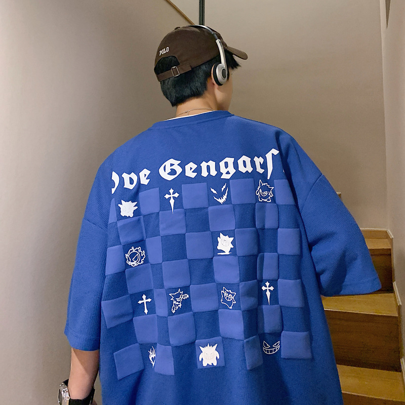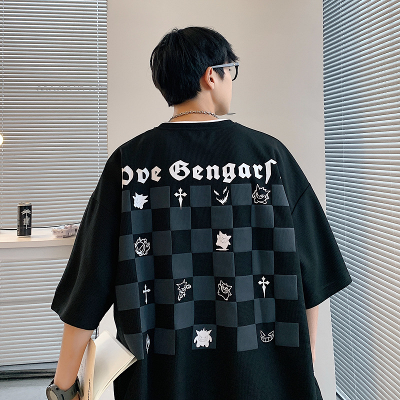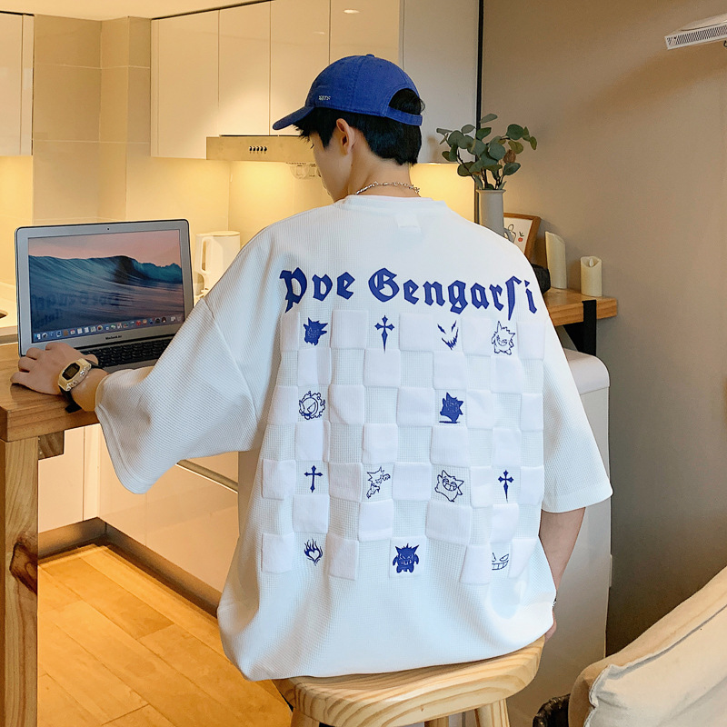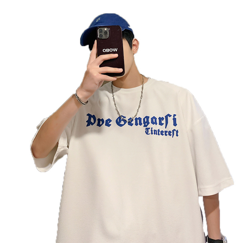 华夫格短袖男款夏季潮牌潮流ins宽松大码衣服美式高街重磅半袖t恤