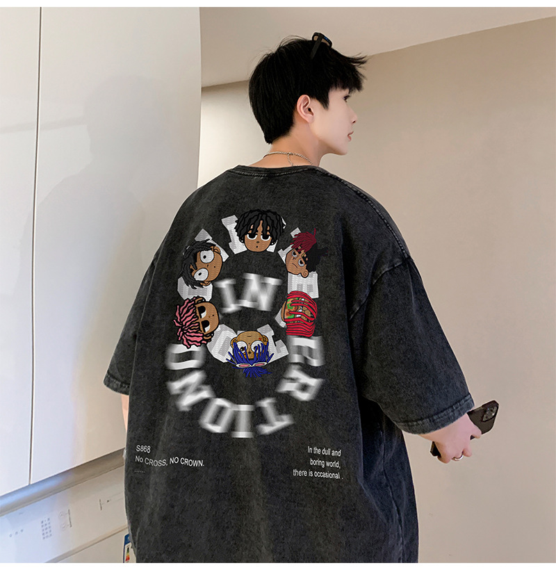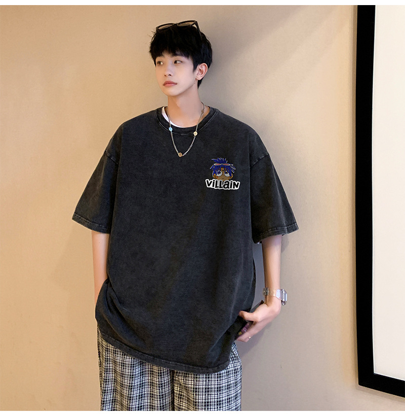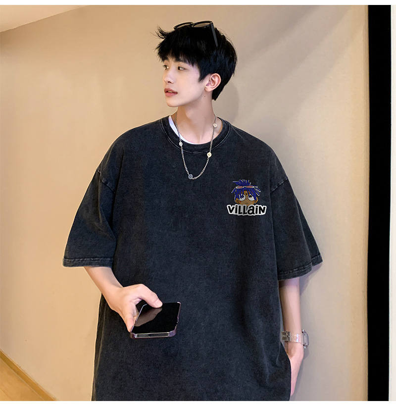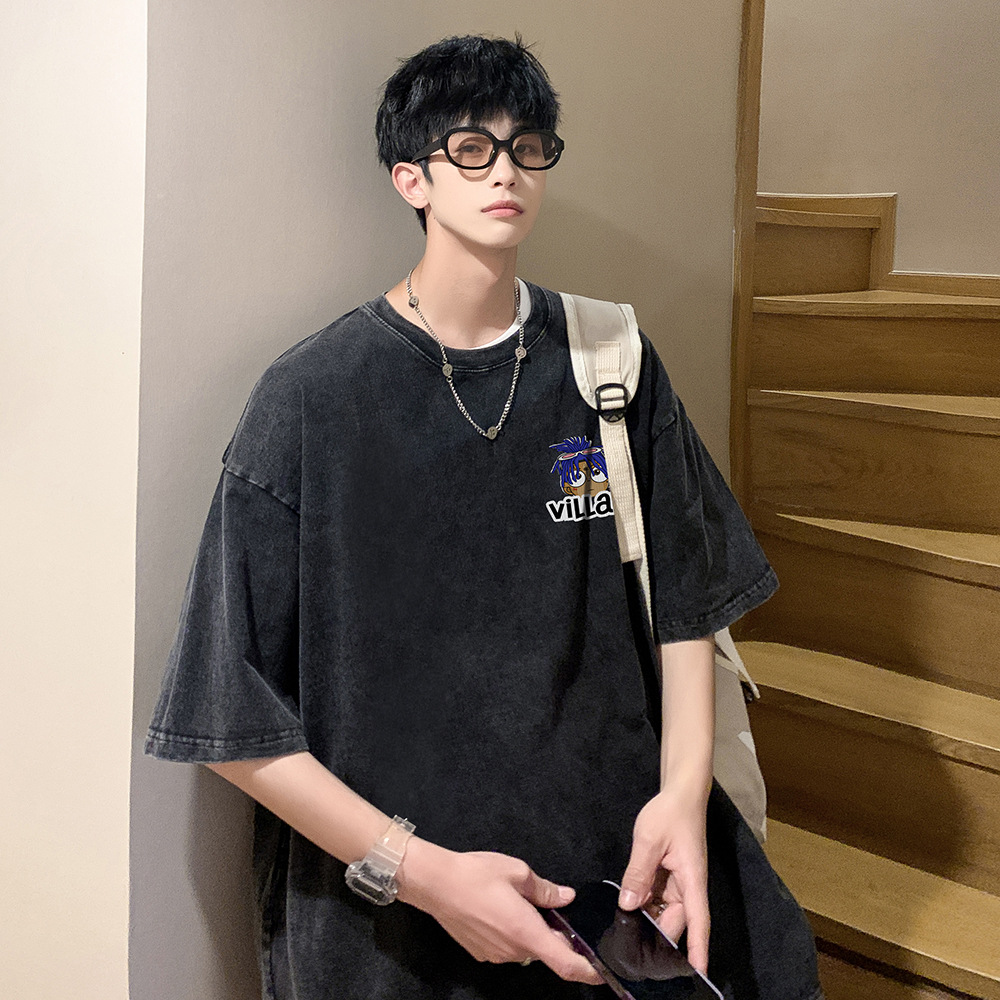 美式高街短袖男款复古oversize潮牌上衣t恤重磅水洗夏季潮流衣服