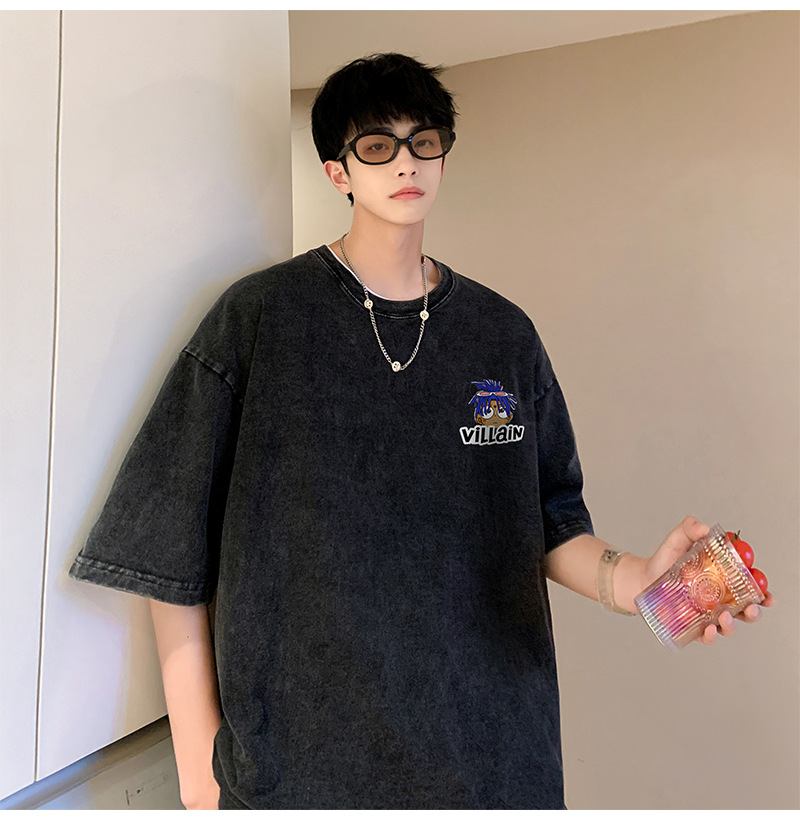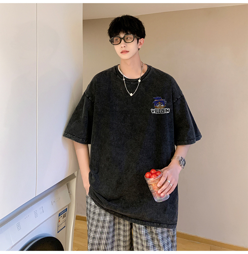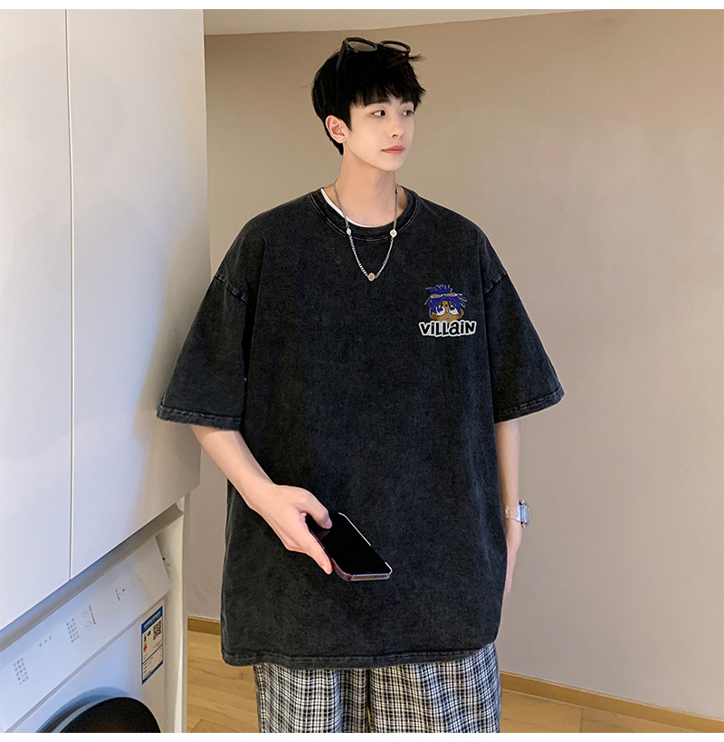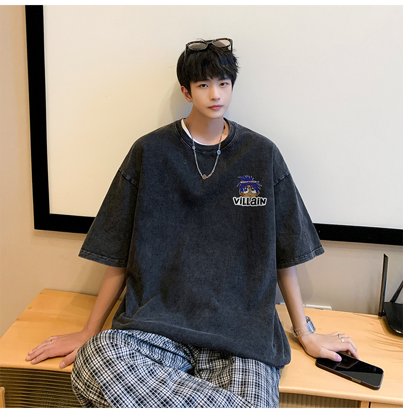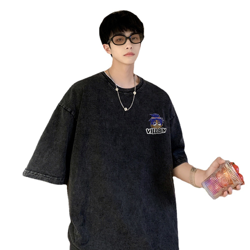 美式高街短袖男款复古oversize潮牌上衣t恤重磅水洗夏季潮流衣服