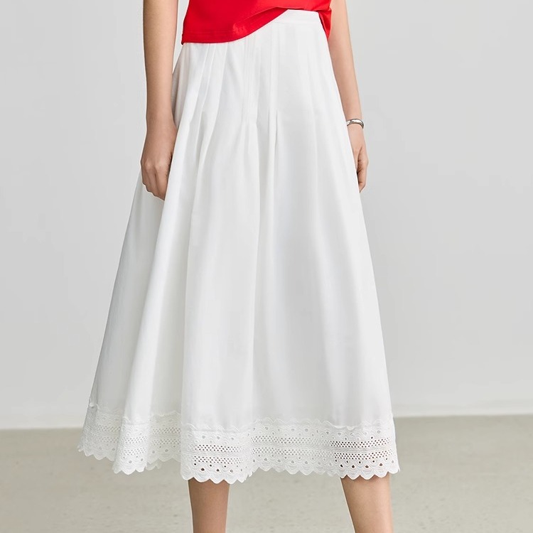 LILY2025春新款气质不对称轻薄宽松百搭白色半身裙小白裙女长款