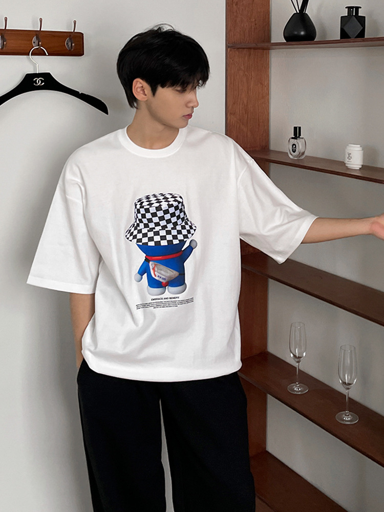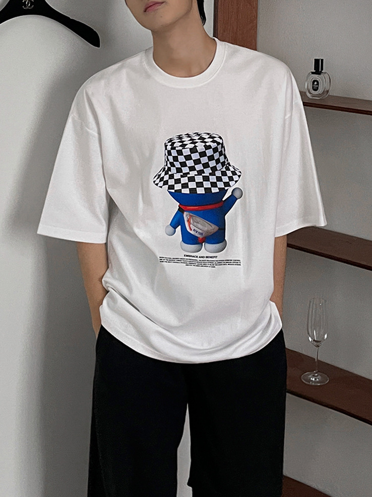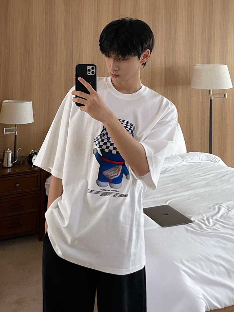 MYQ机器猫短袖T恤男夏季宽松休闲纯棉短T韩版潮流圆领半袖上衣