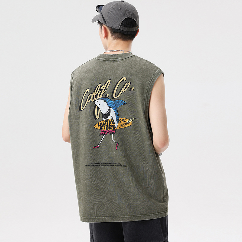 纯棉背心男夏季宽松美式复古水洗做旧无袖t恤潮牌ins外穿男士坎肩