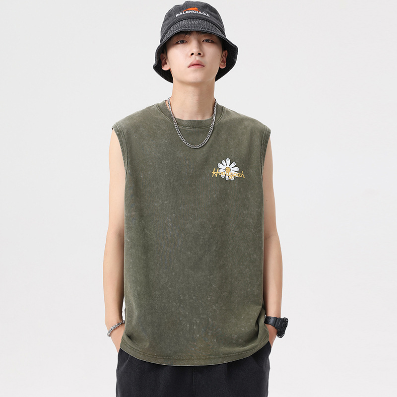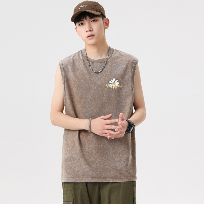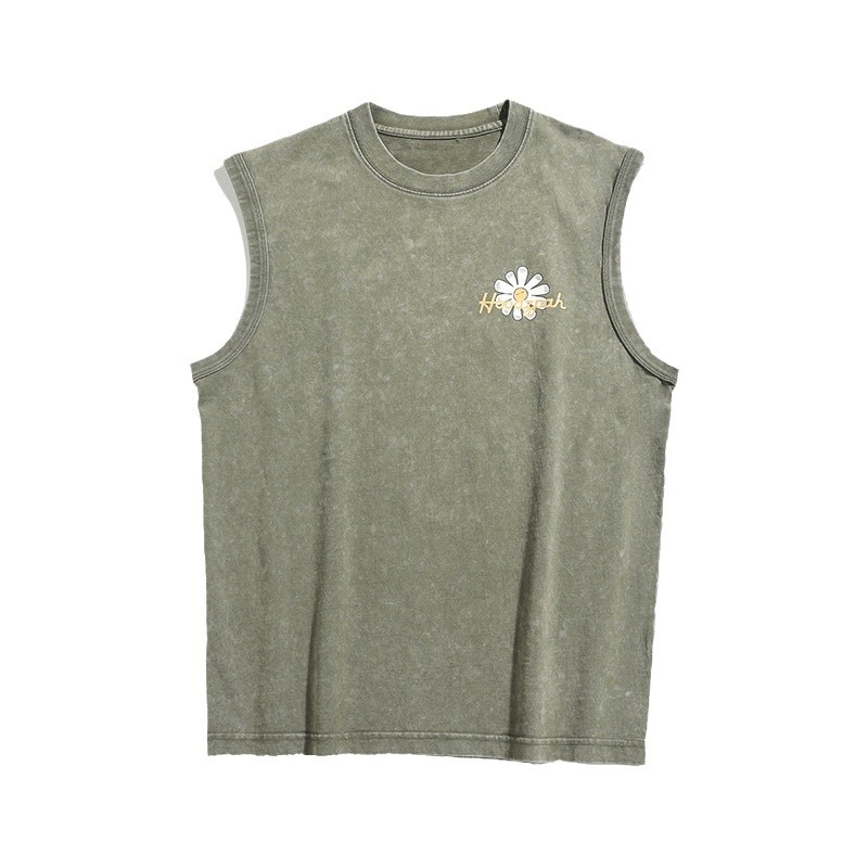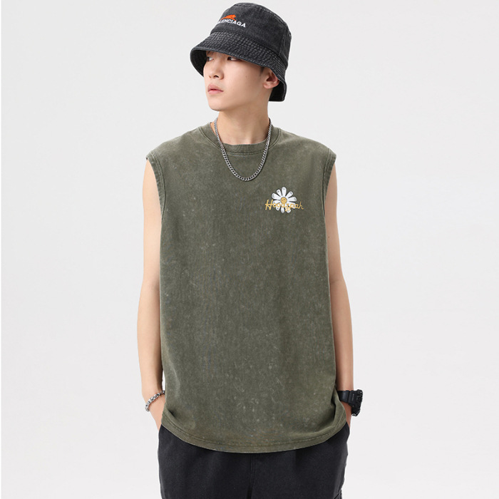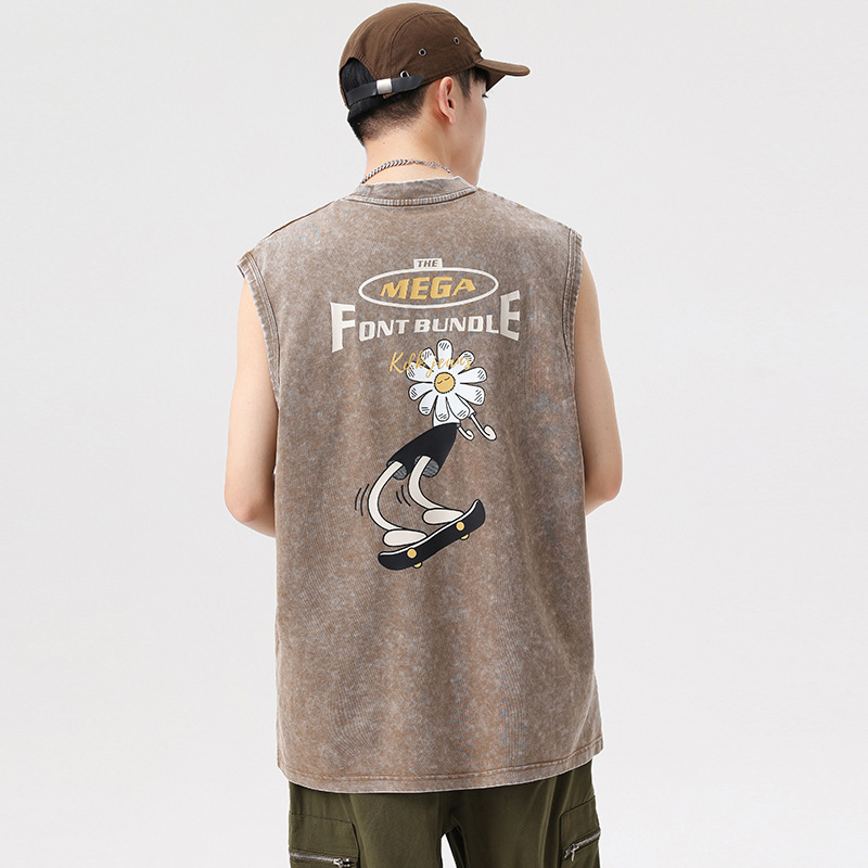 美式复古水洗做旧背心男夏季宽松设计感高街坎肩休闲运动无袖t恤