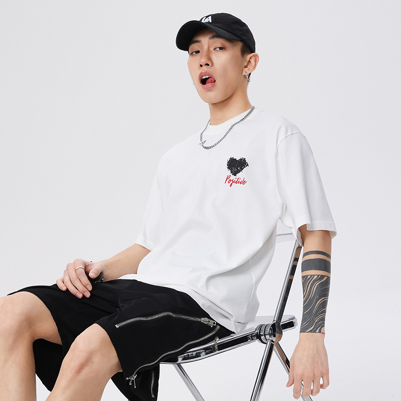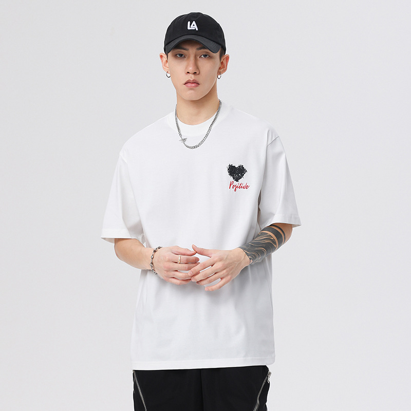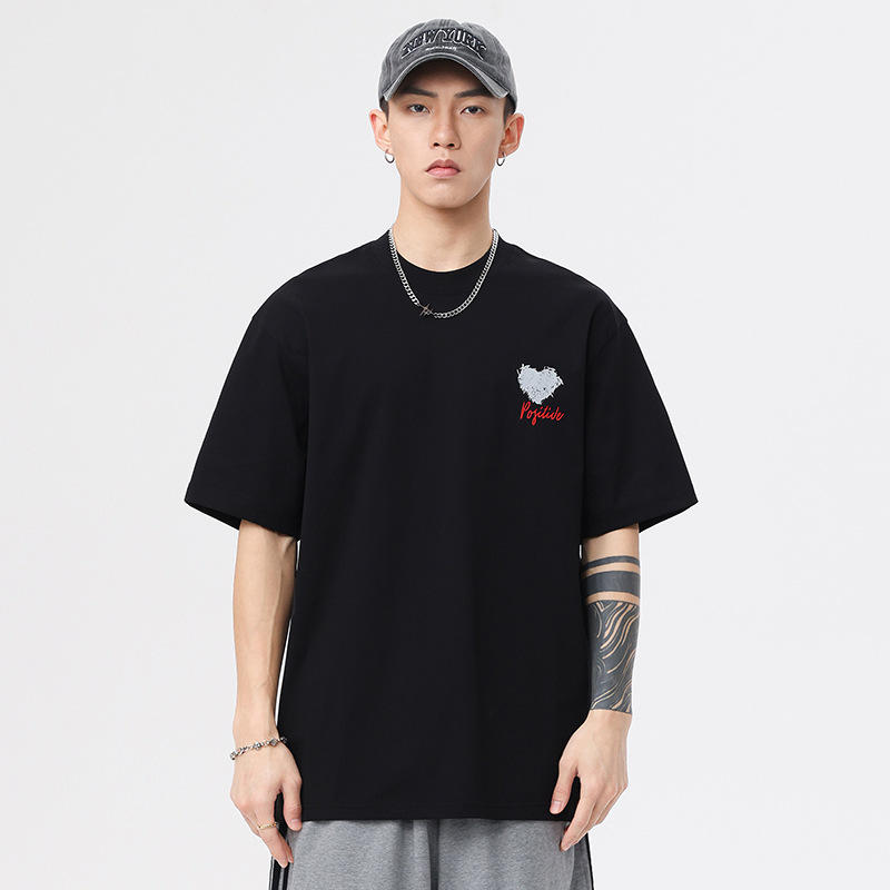 230g重磅T恤男宽松上衣潮牌短袖夏季新款爱心休闲半袖衣服男